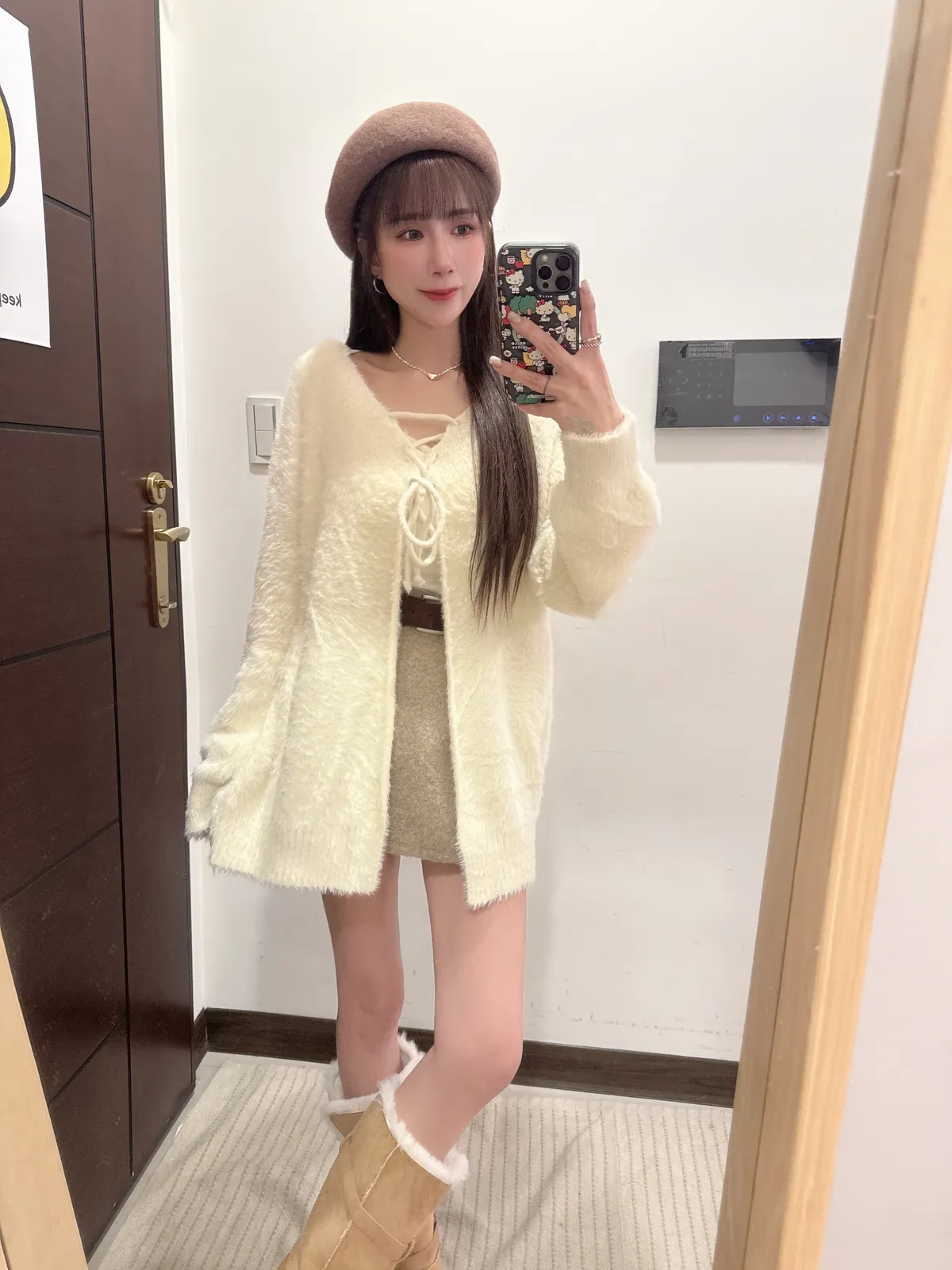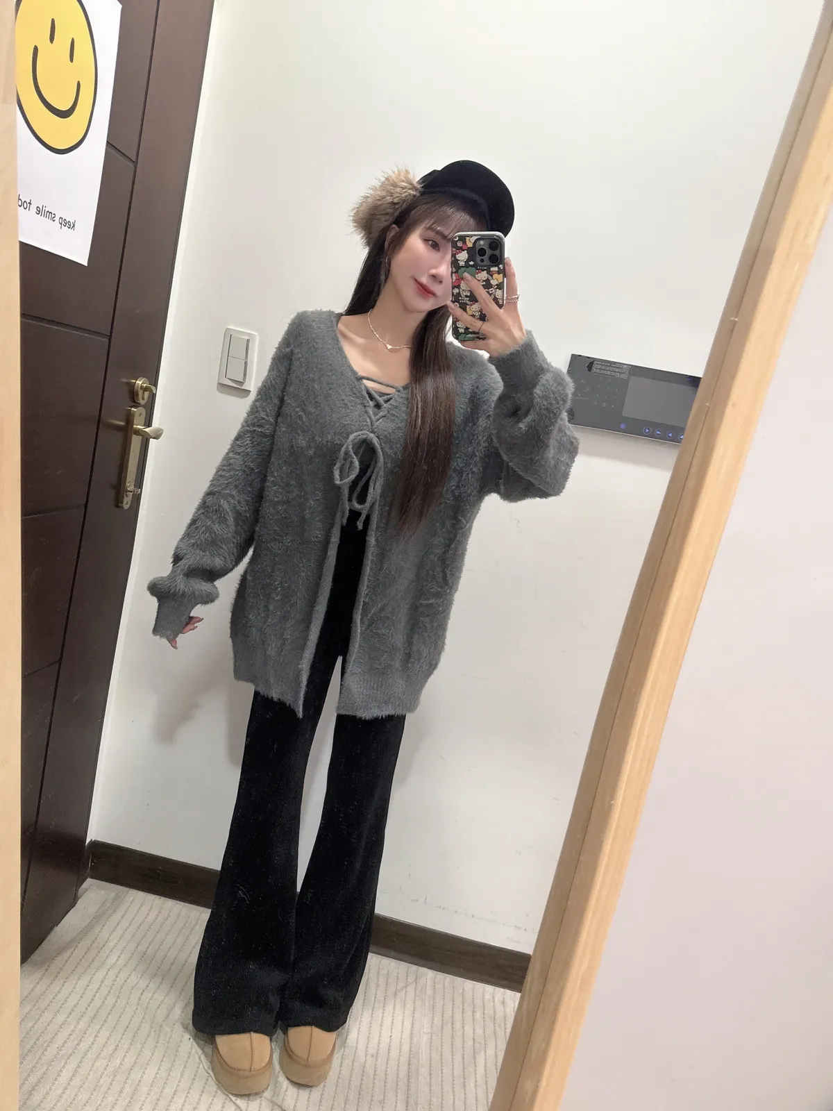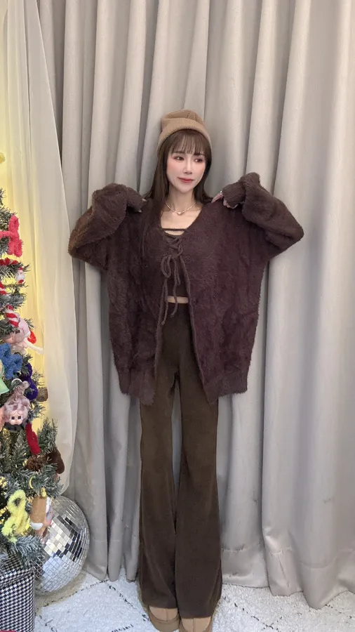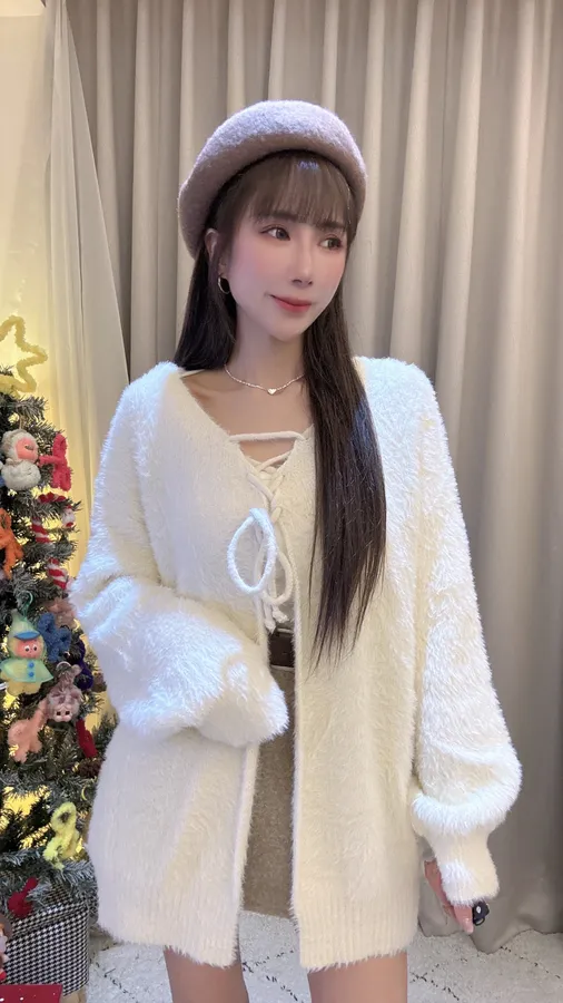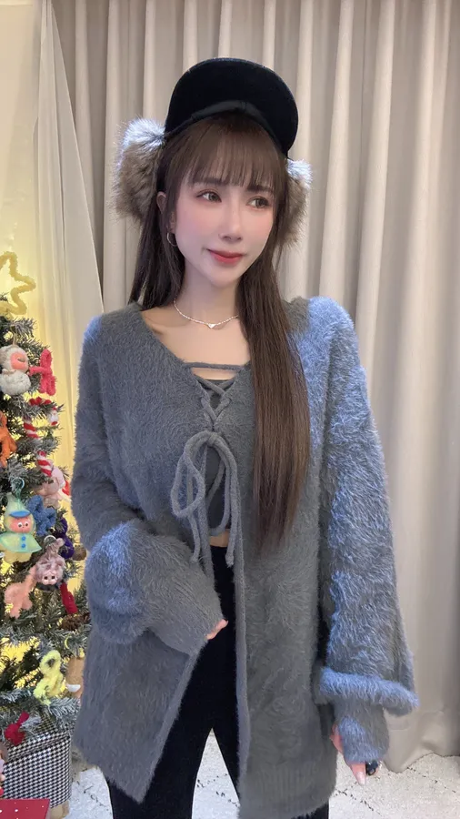 預購/訂製款馬海毛兩面穿綁帶罩衫外套上衣