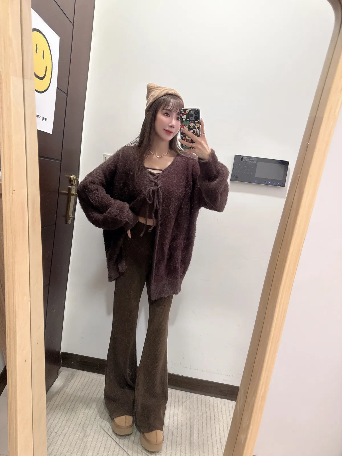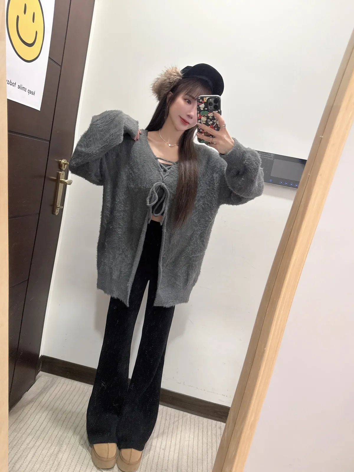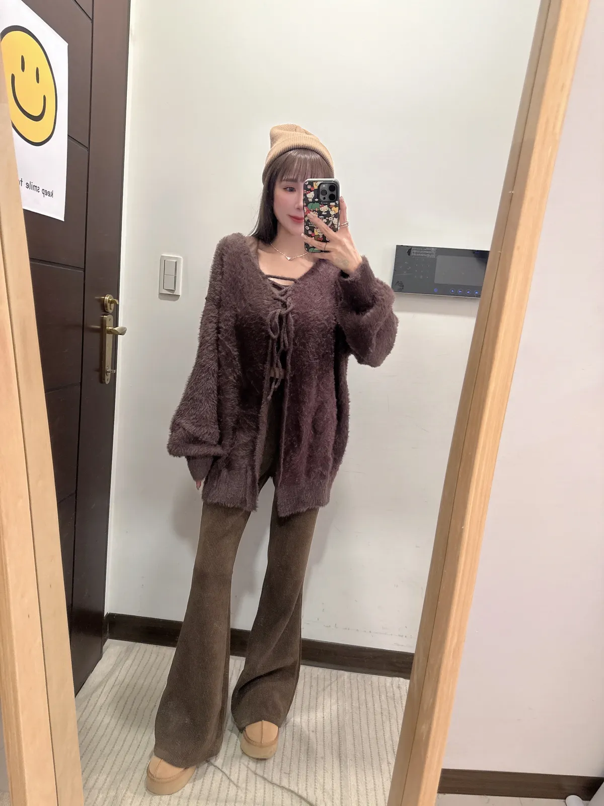 預購/訂製款馬海毛兩面穿綁帶罩衫外套上衣