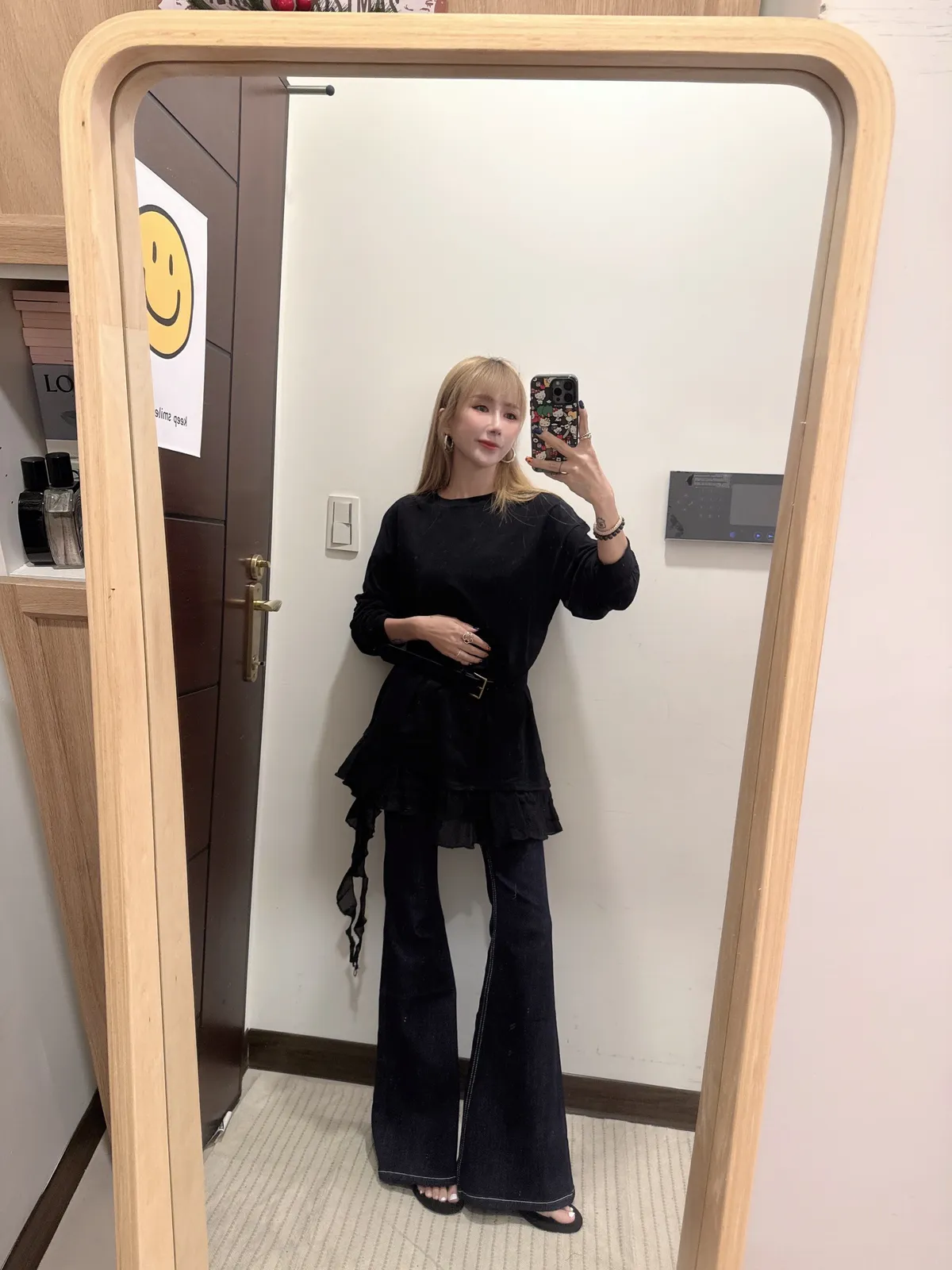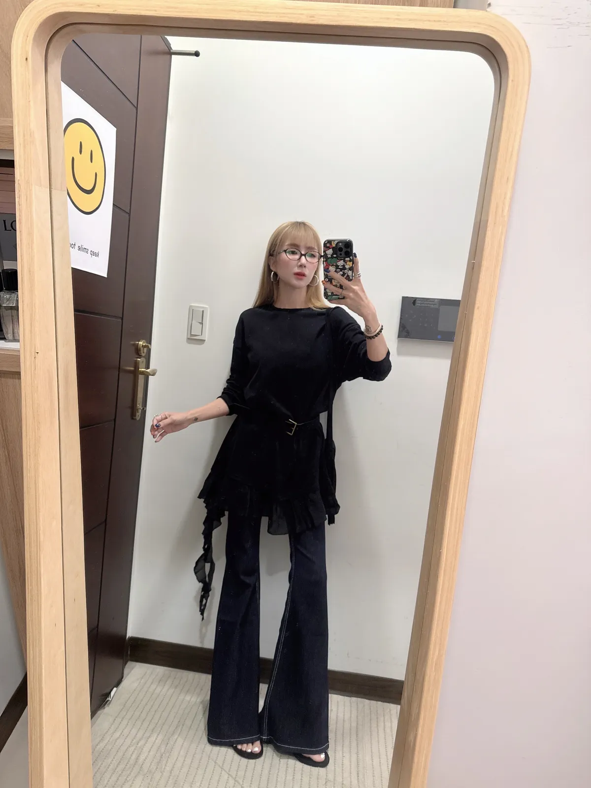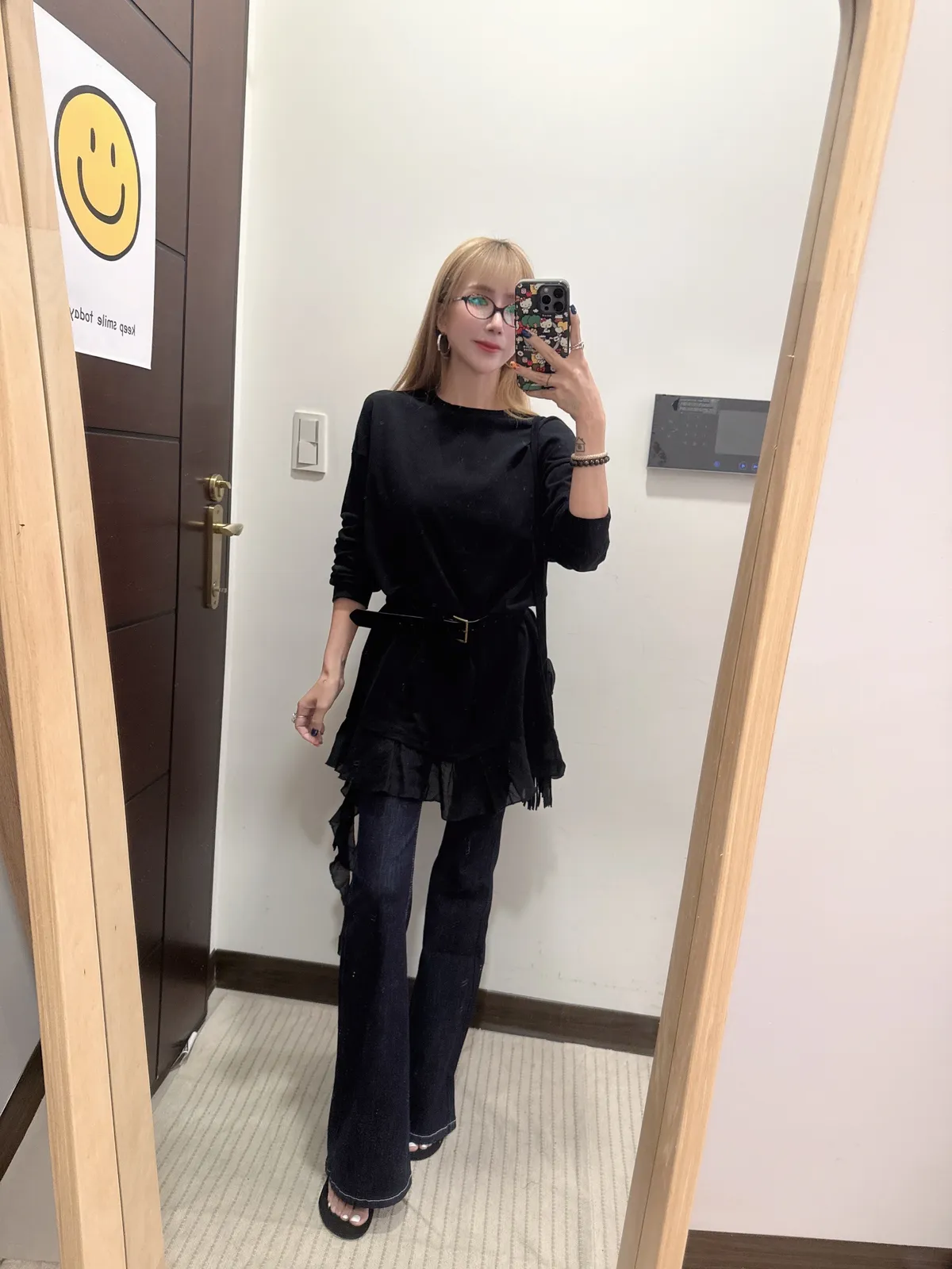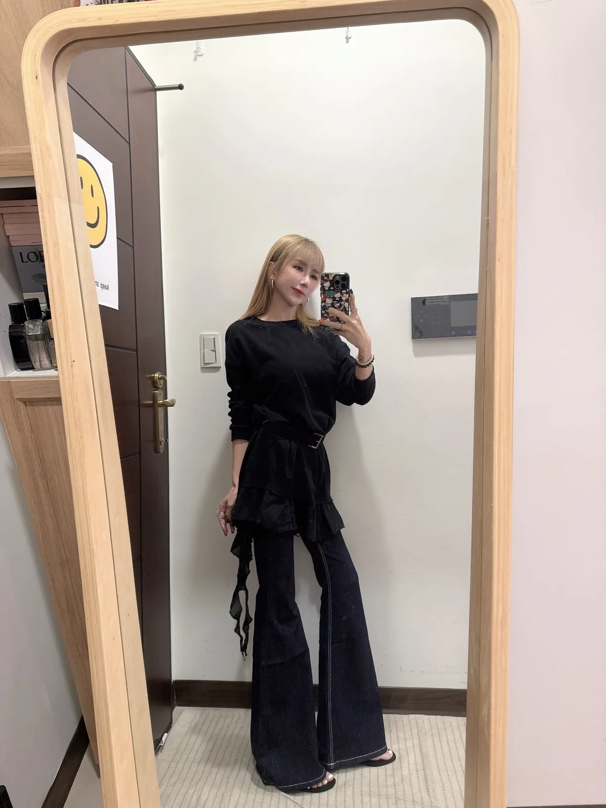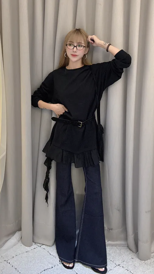單穿繫皮帶配喇叭褲都好看