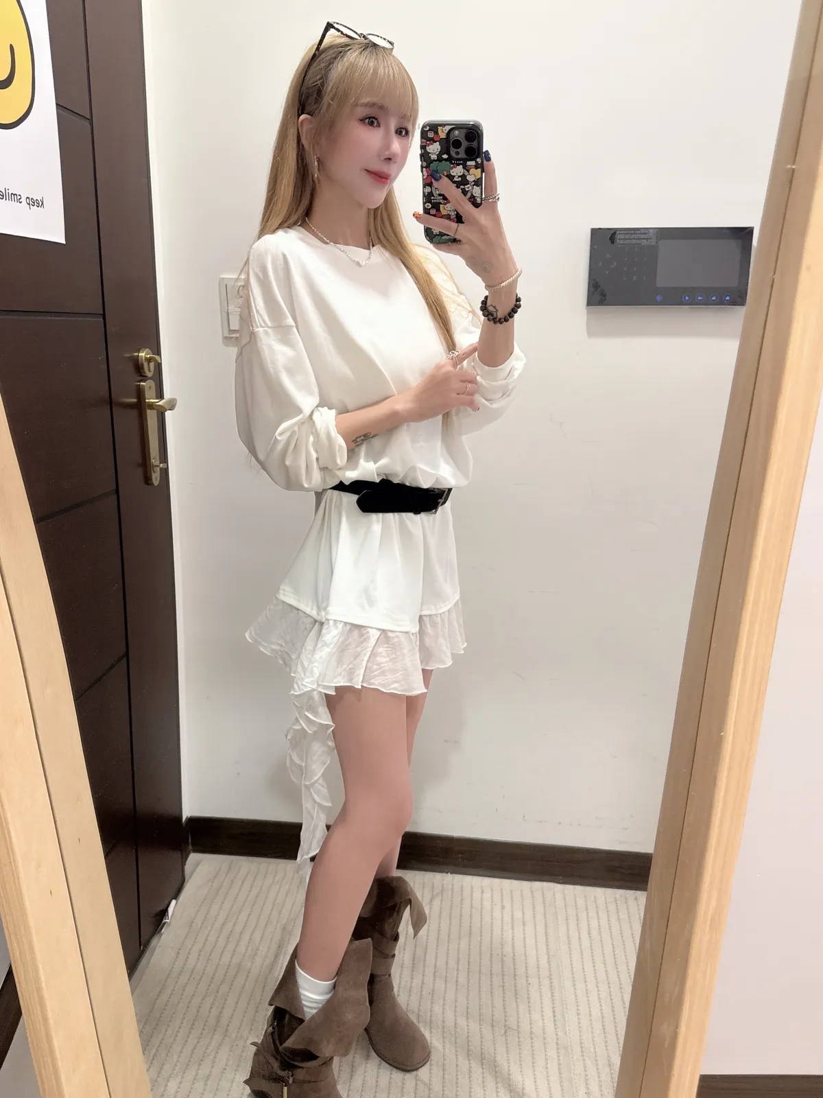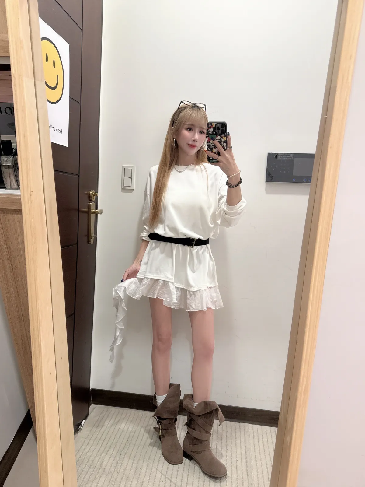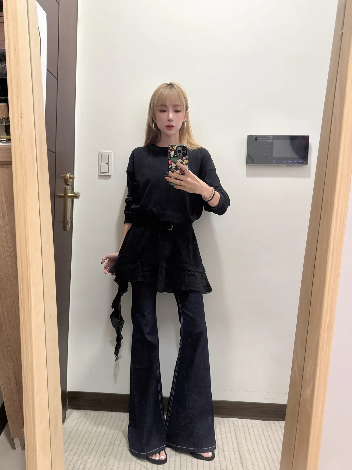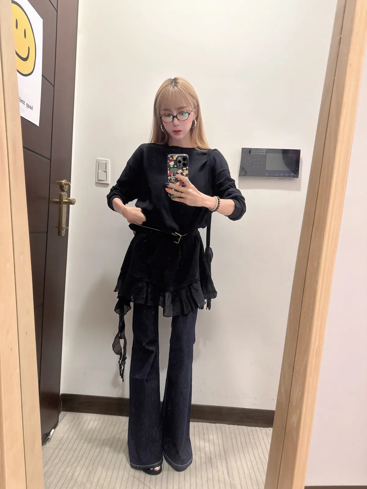 單穿繫皮帶配喇叭褲都好看
