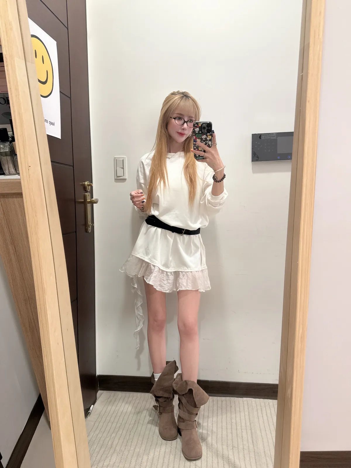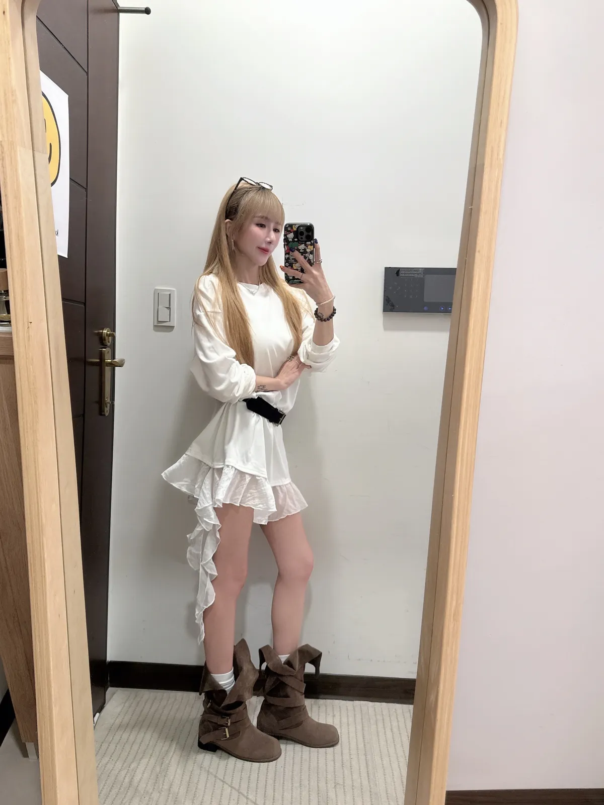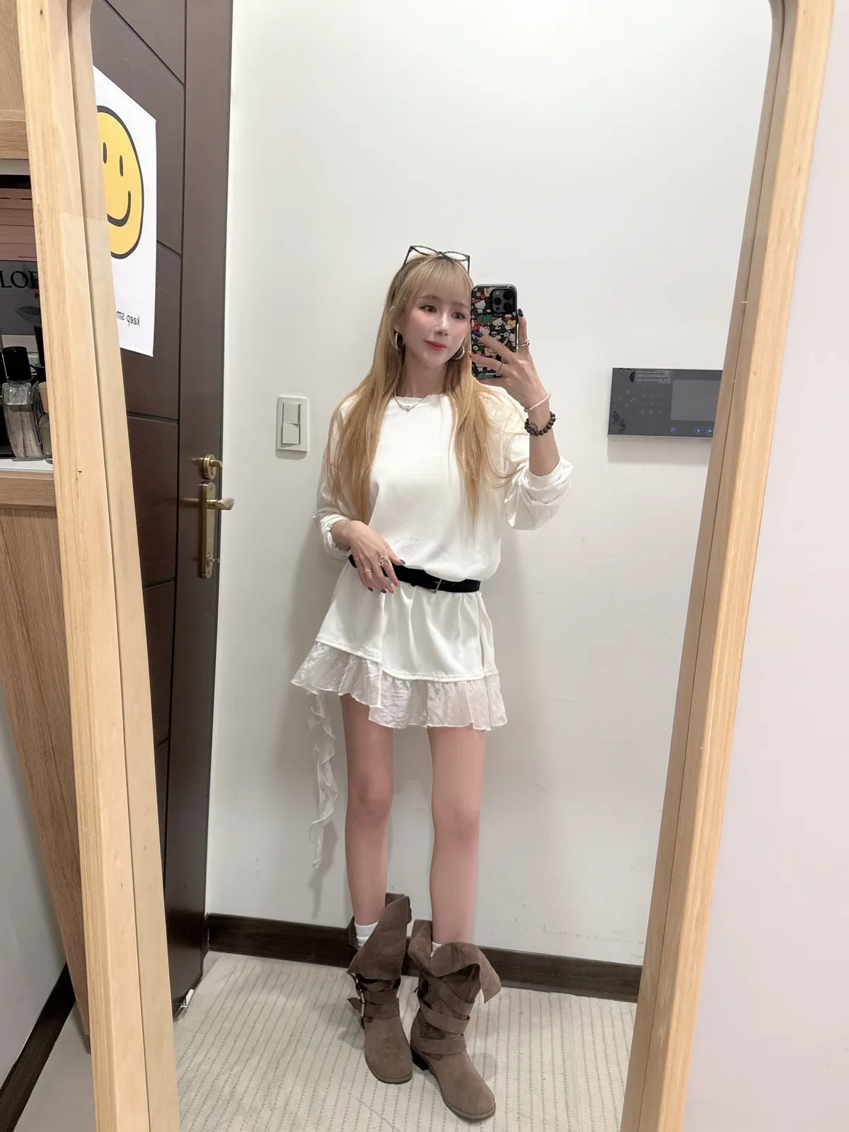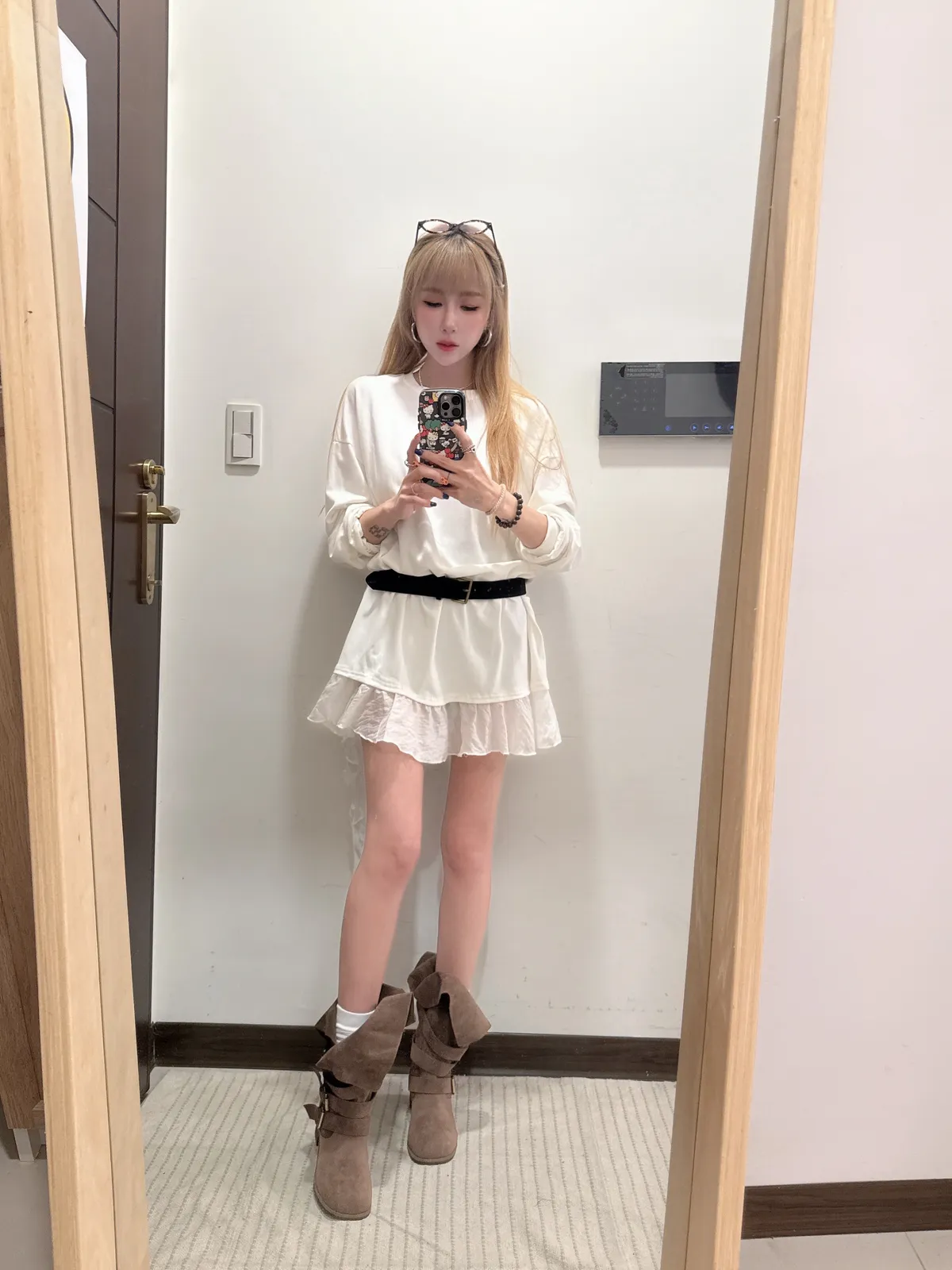 單穿繫皮帶配喇叭褲都好看