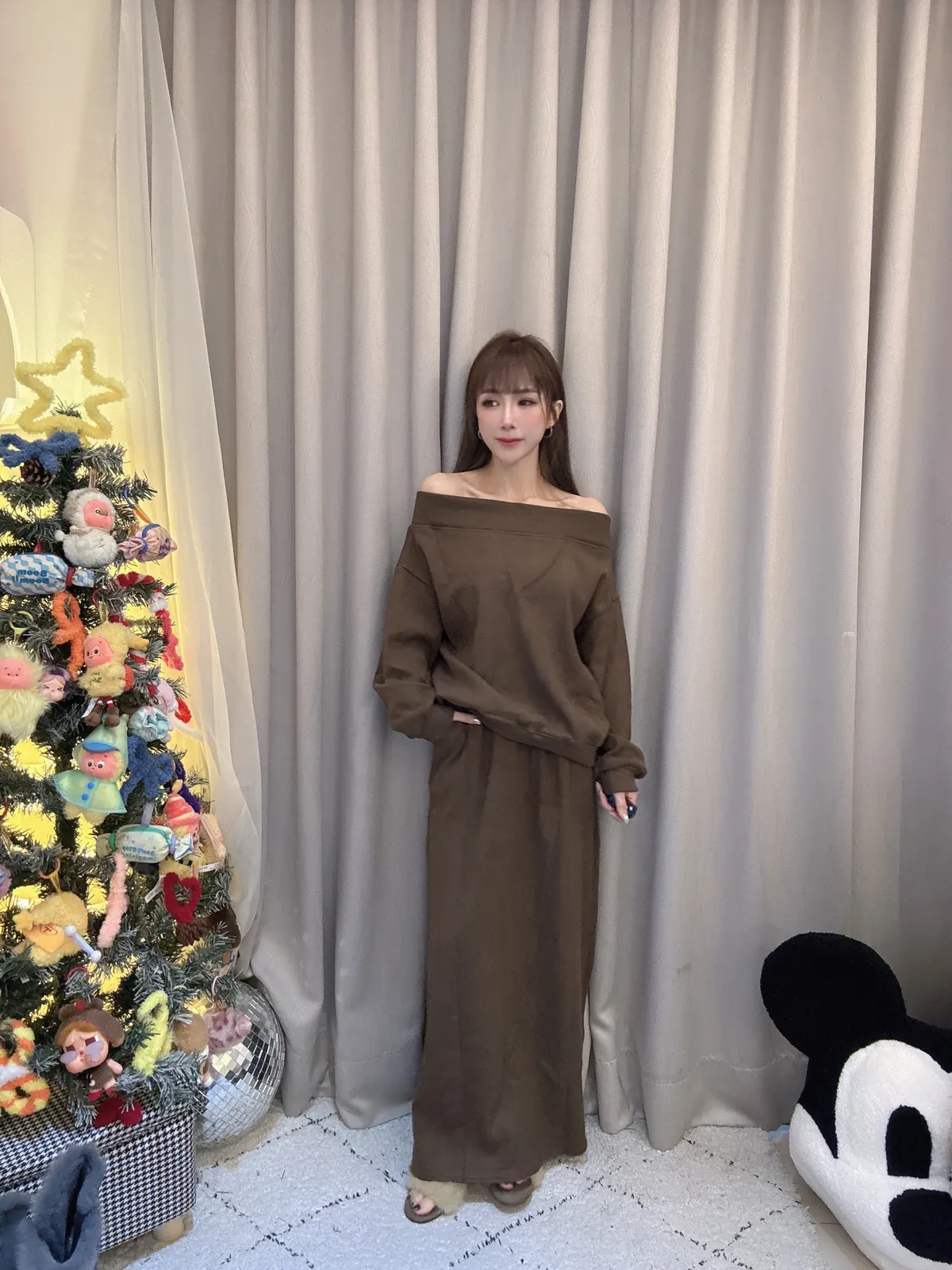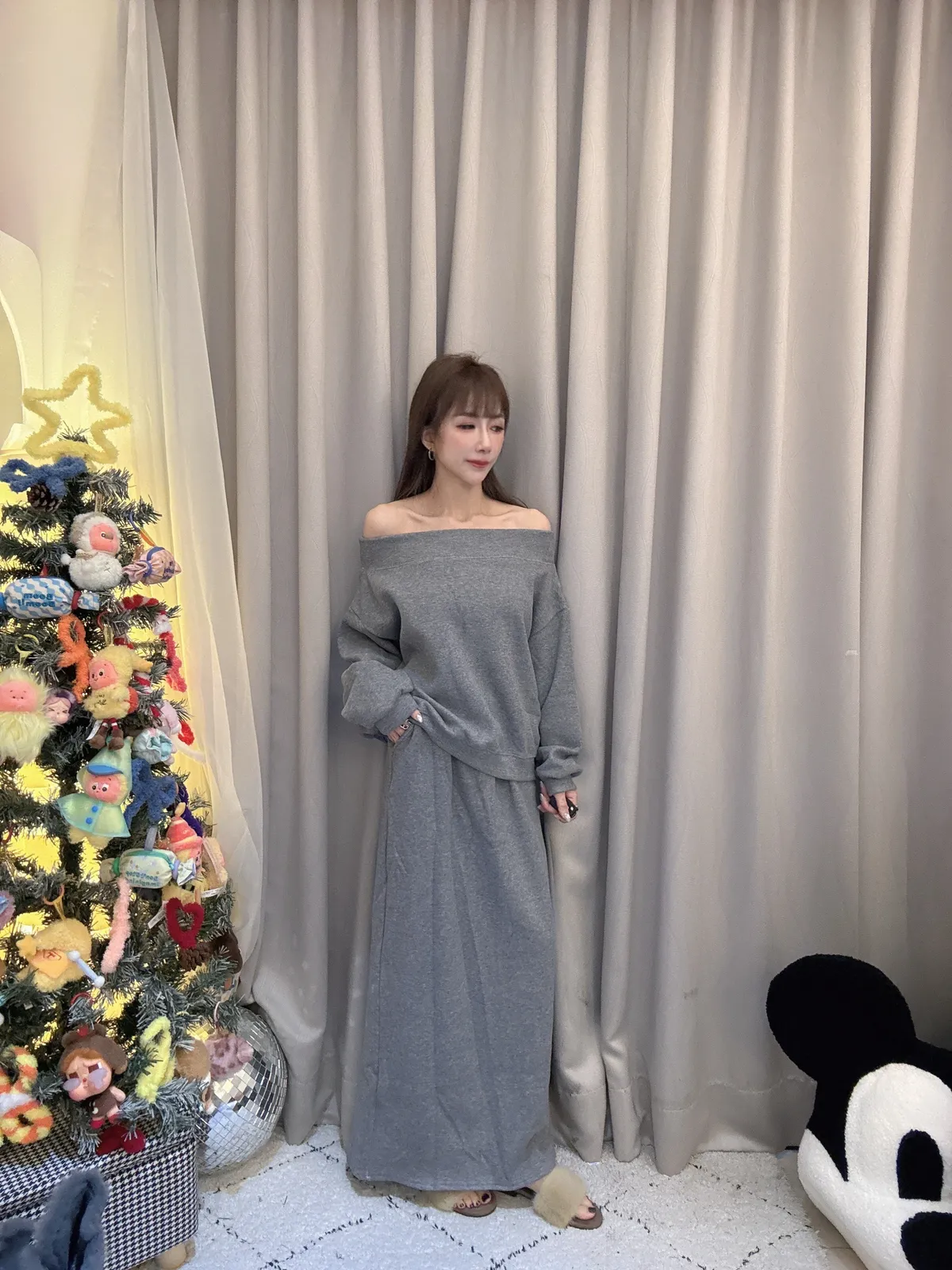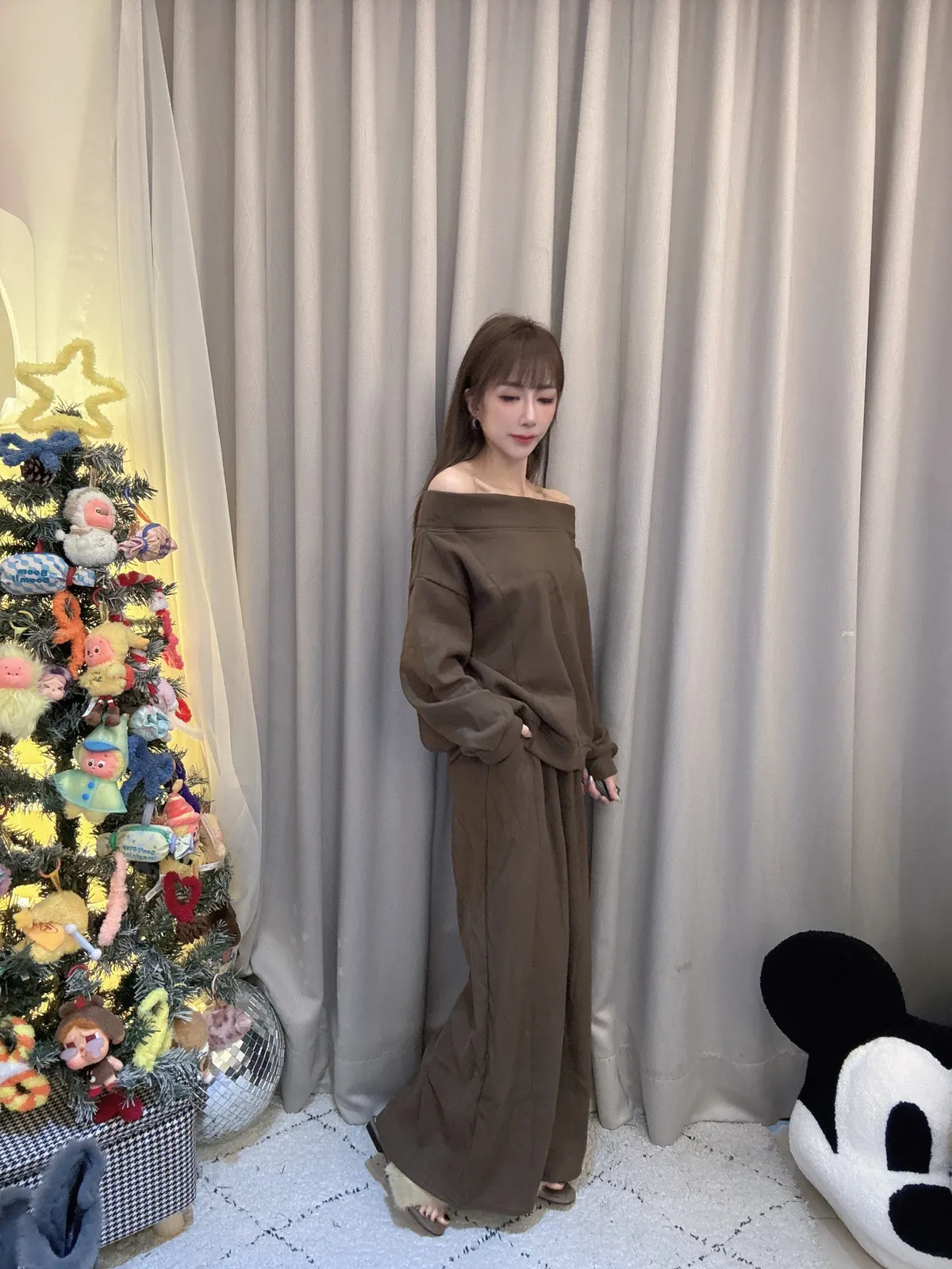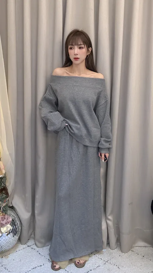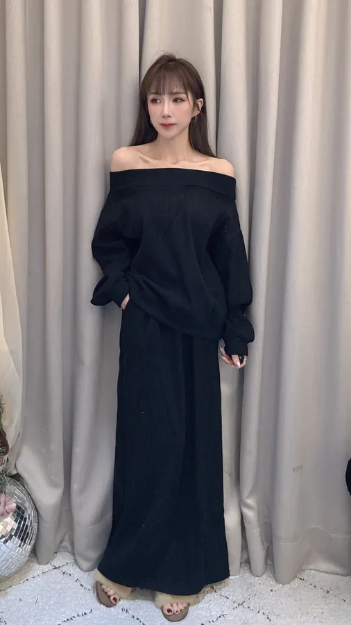 預購/厚磅刷毛一字領套裝