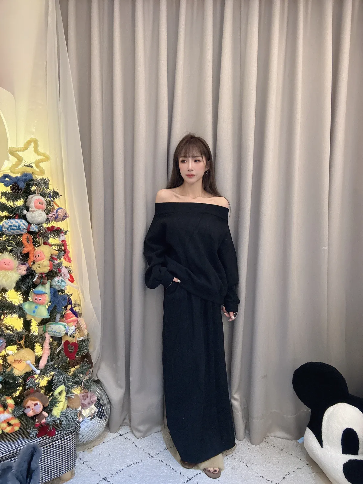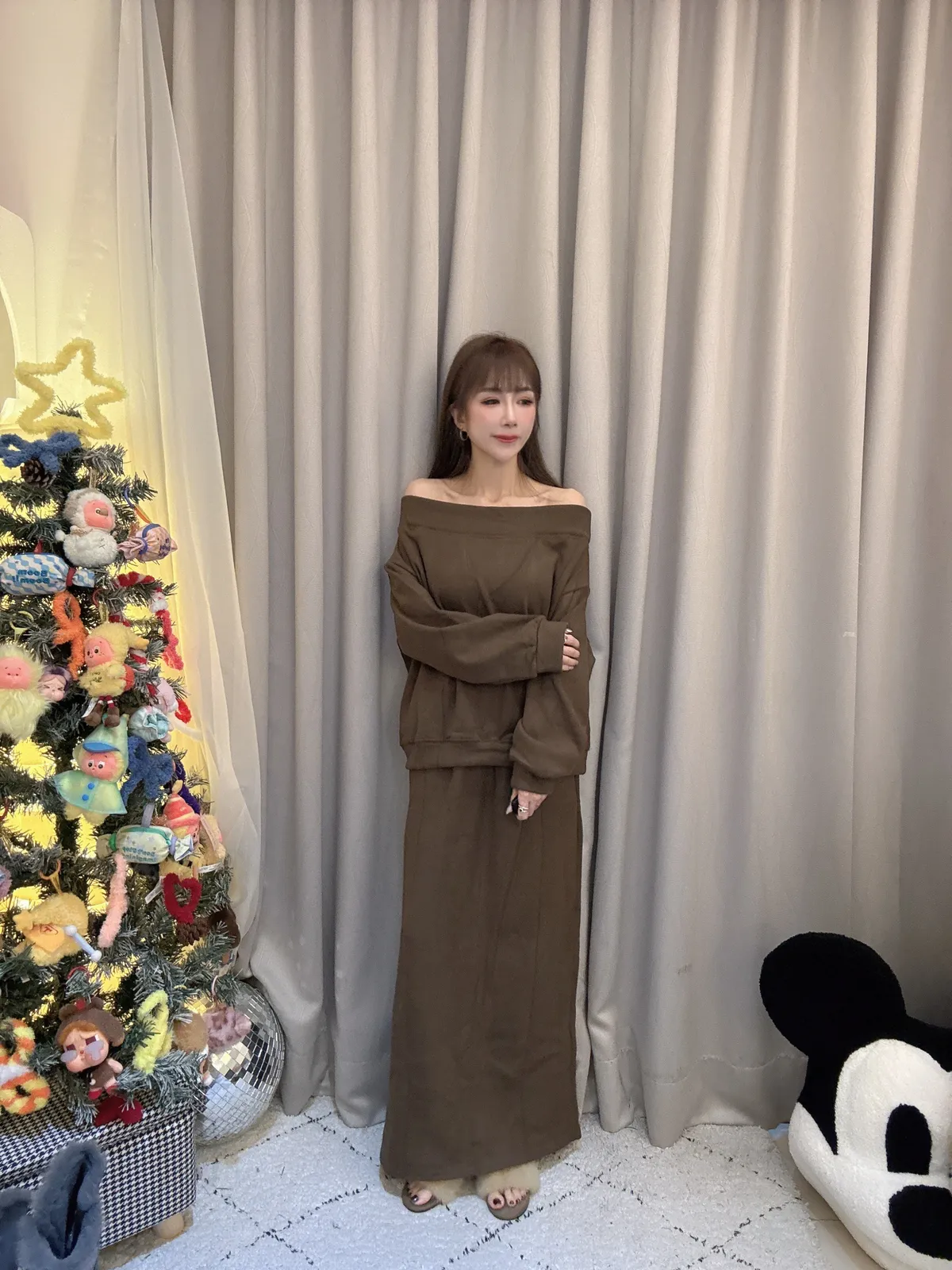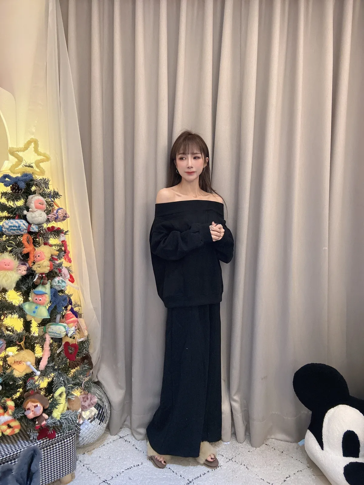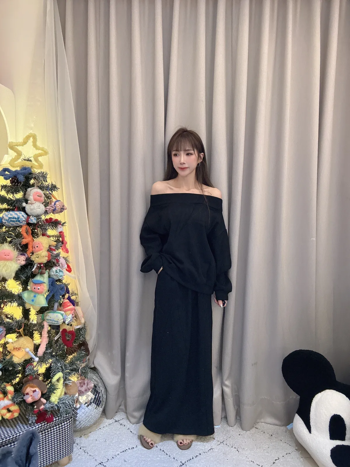預購/厚磅刷毛一字領套裝