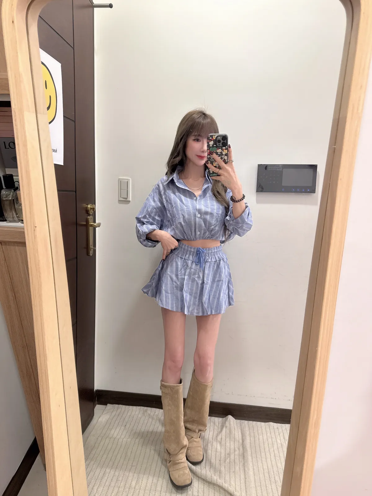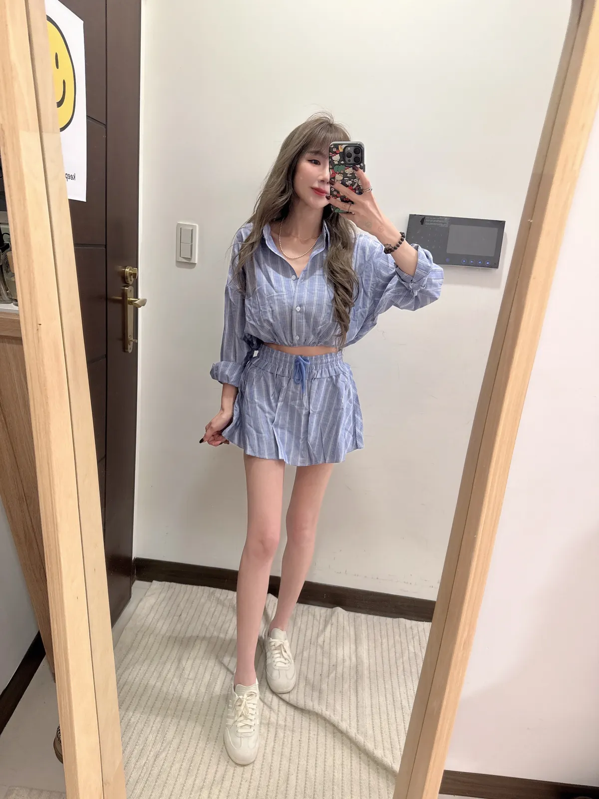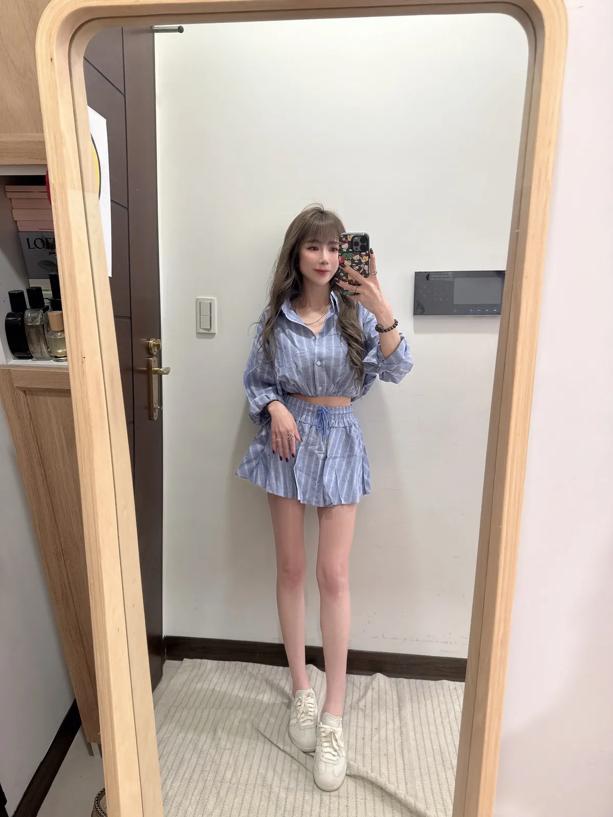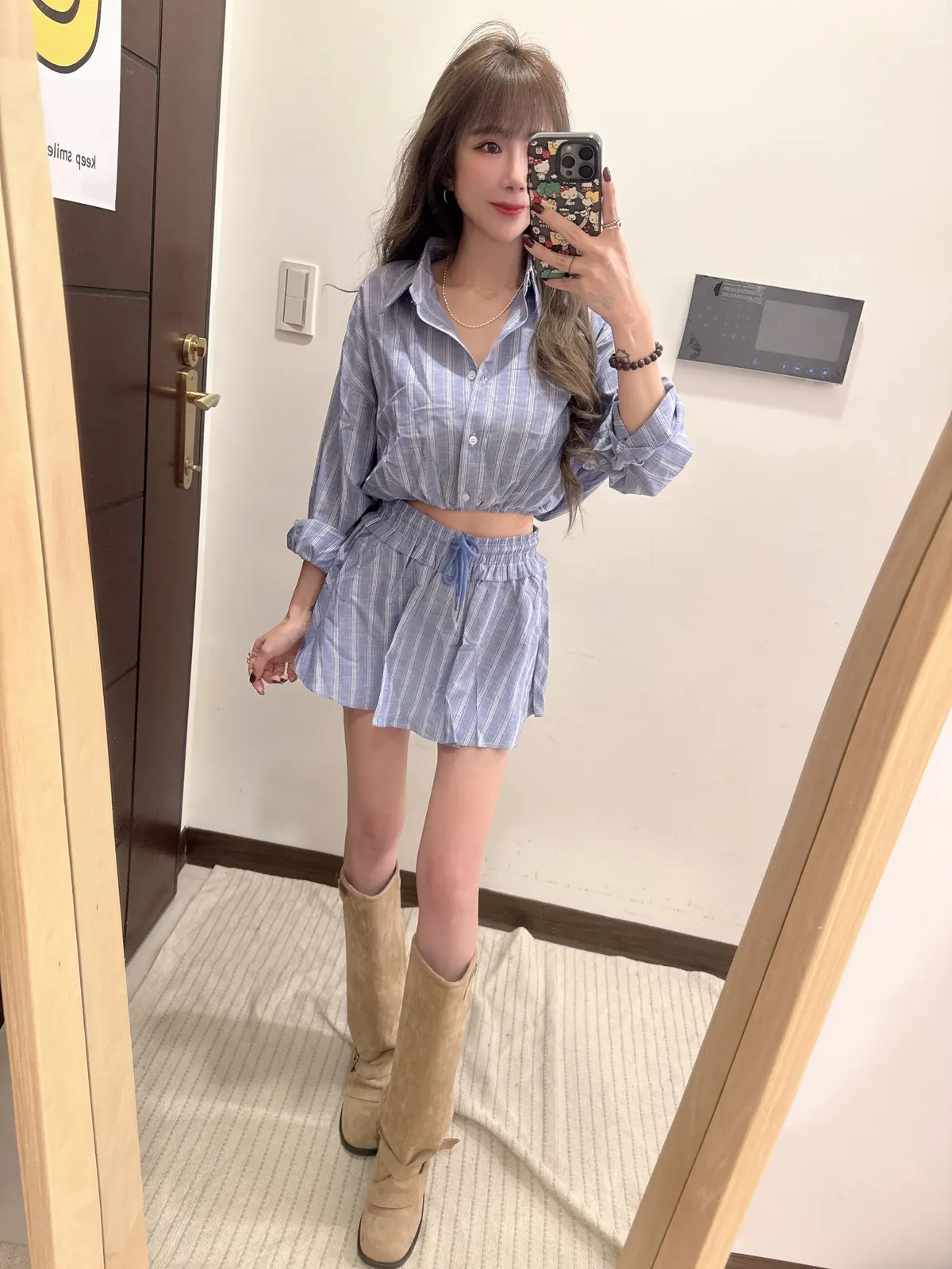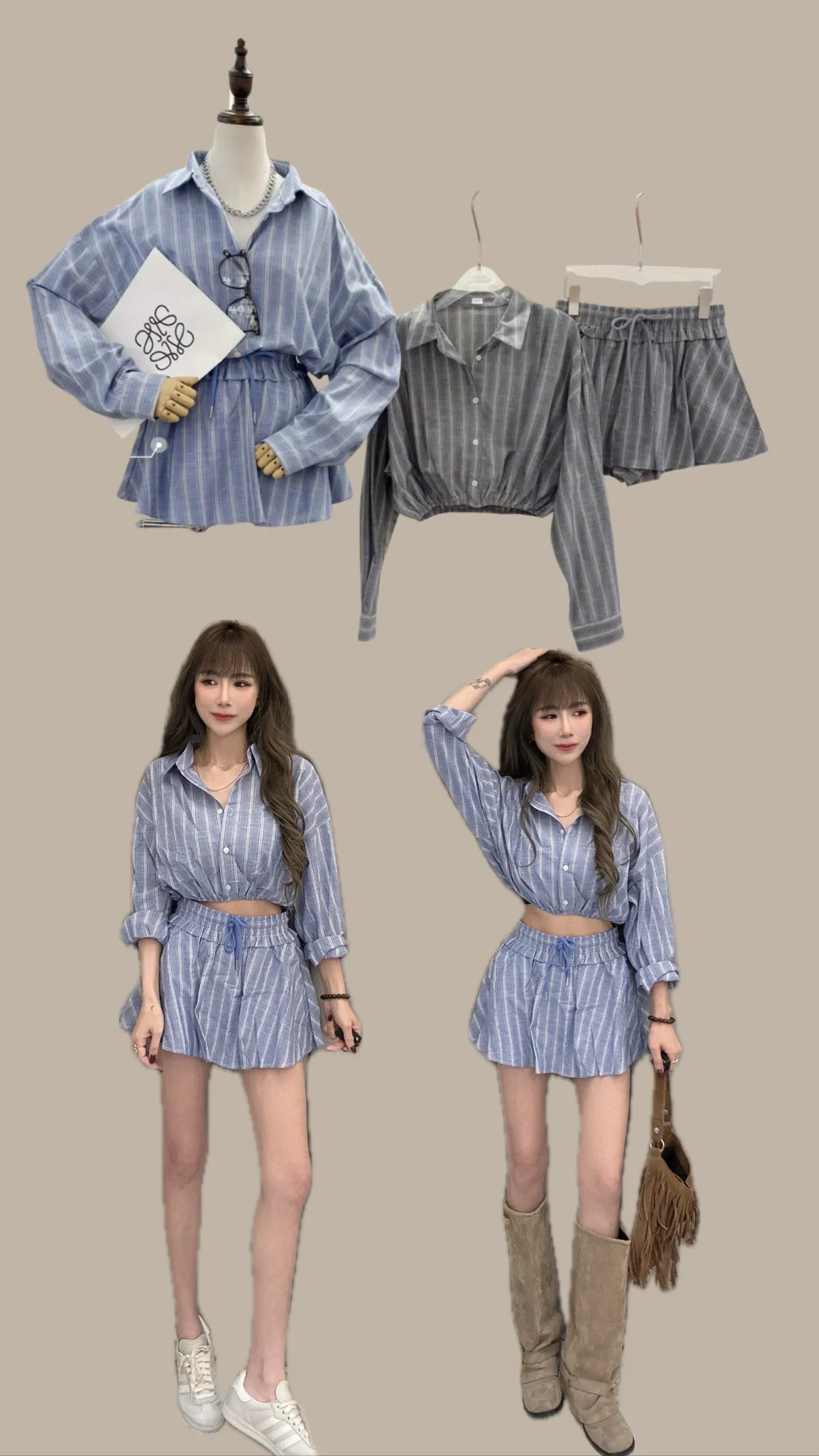 🥐商品說明🥐棉麻材質/上衣下襬鬆緊縮腰上衣全長43胸寬52褲裙全長33 腰33-48