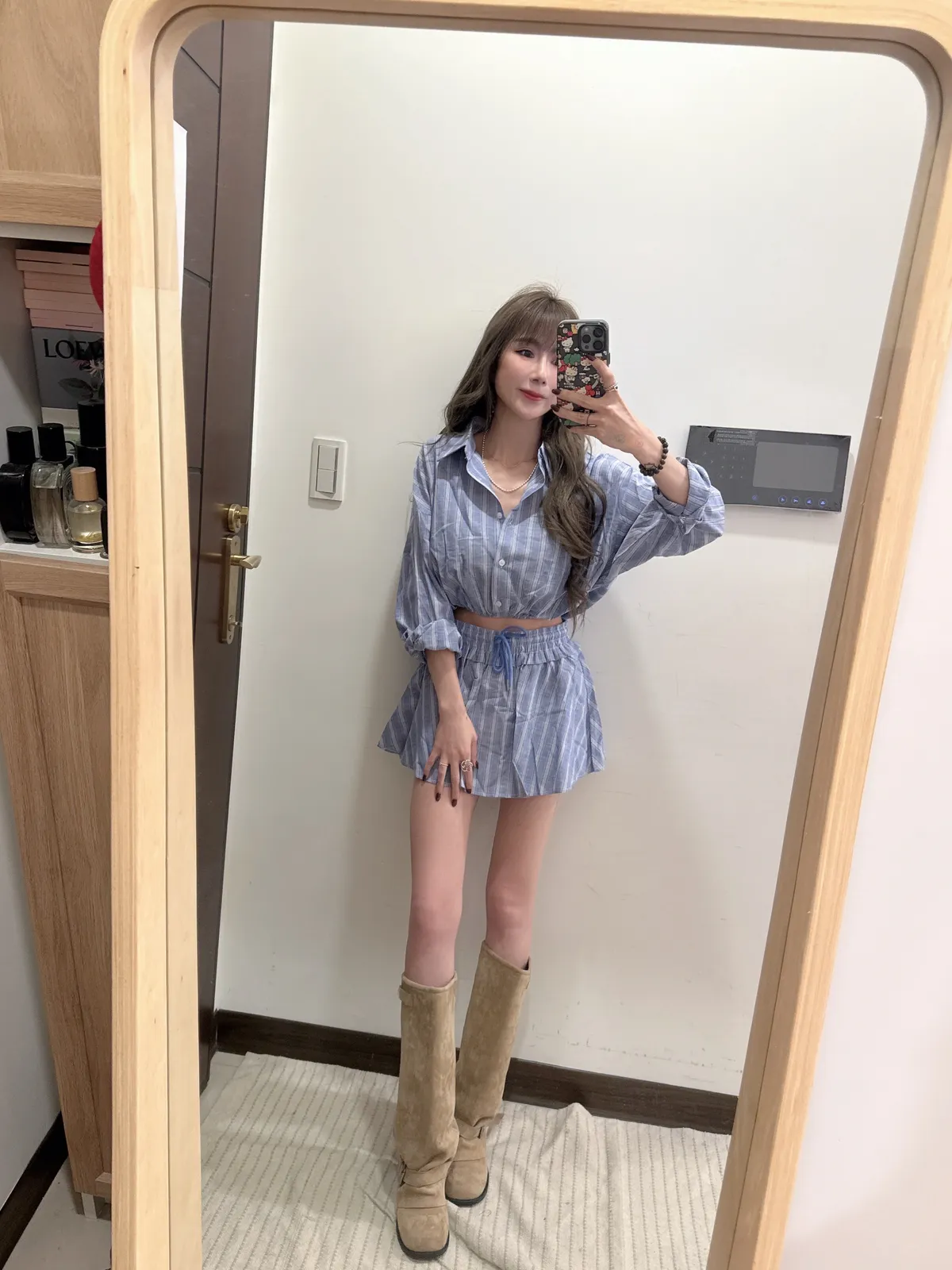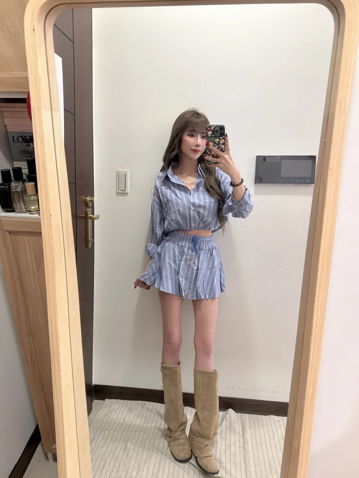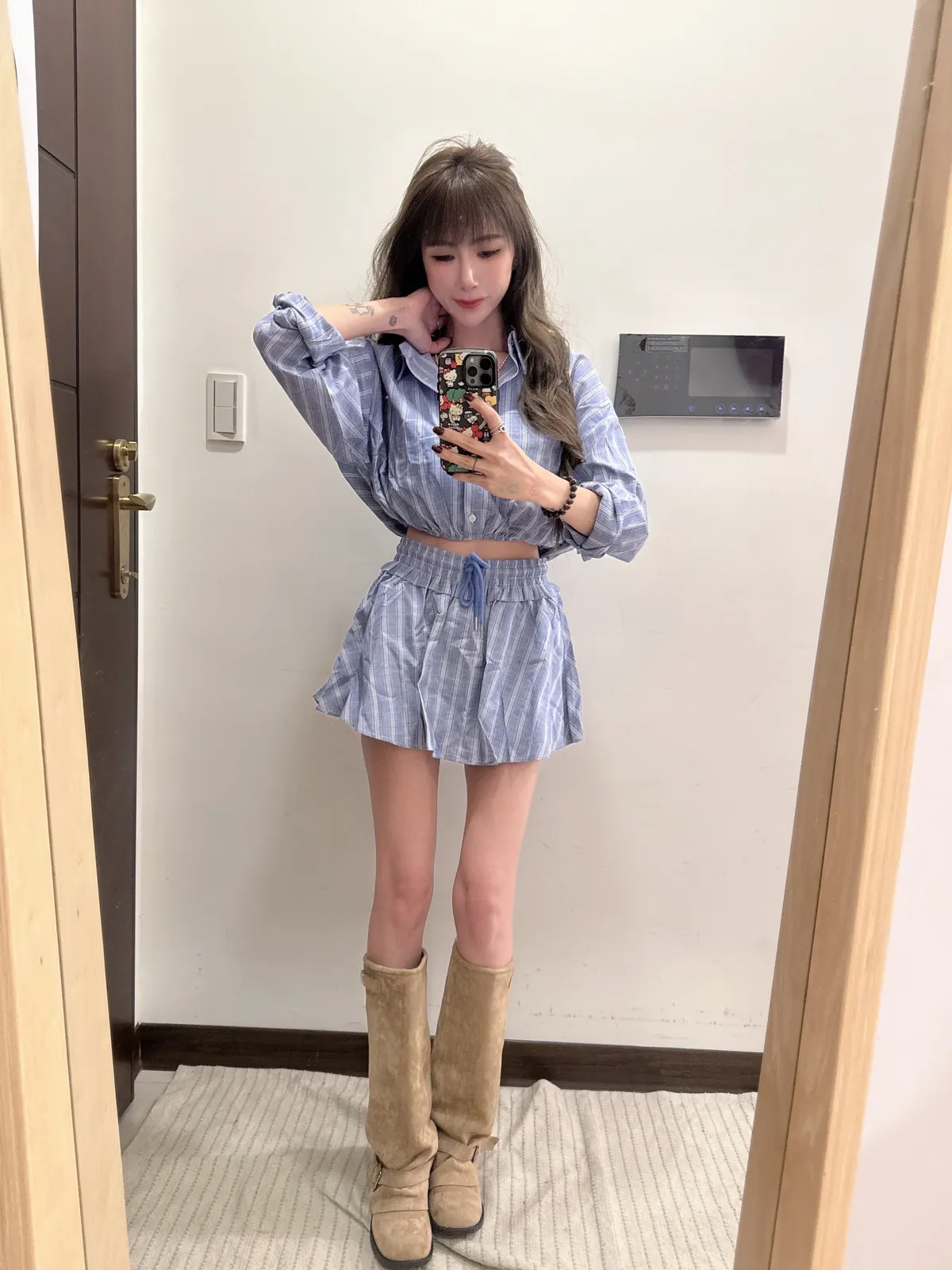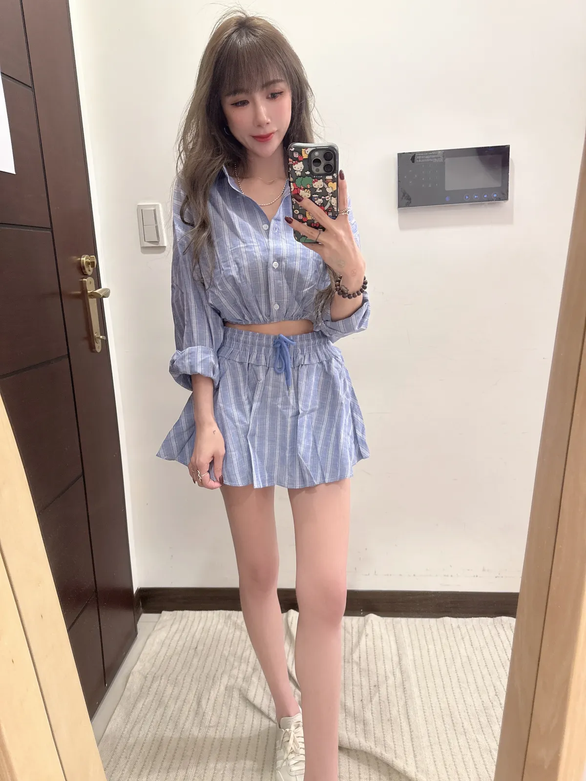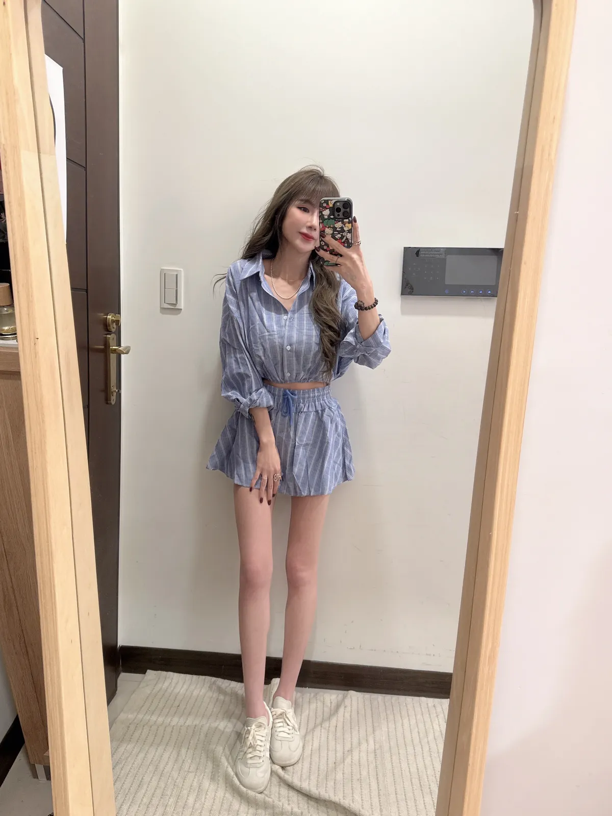 🥐商品說明🥐棉麻材質/上衣下襬鬆緊縮腰上衣全長43胸寬52褲裙全長33 腰33-48