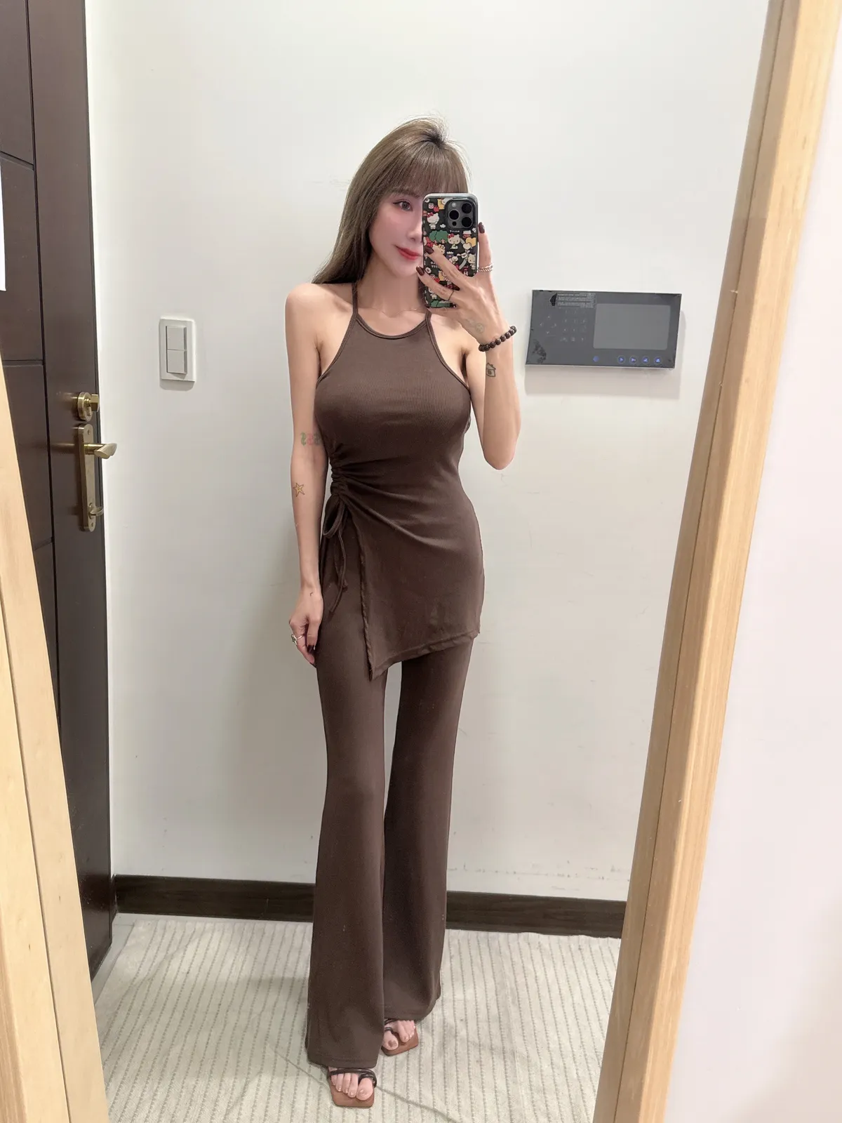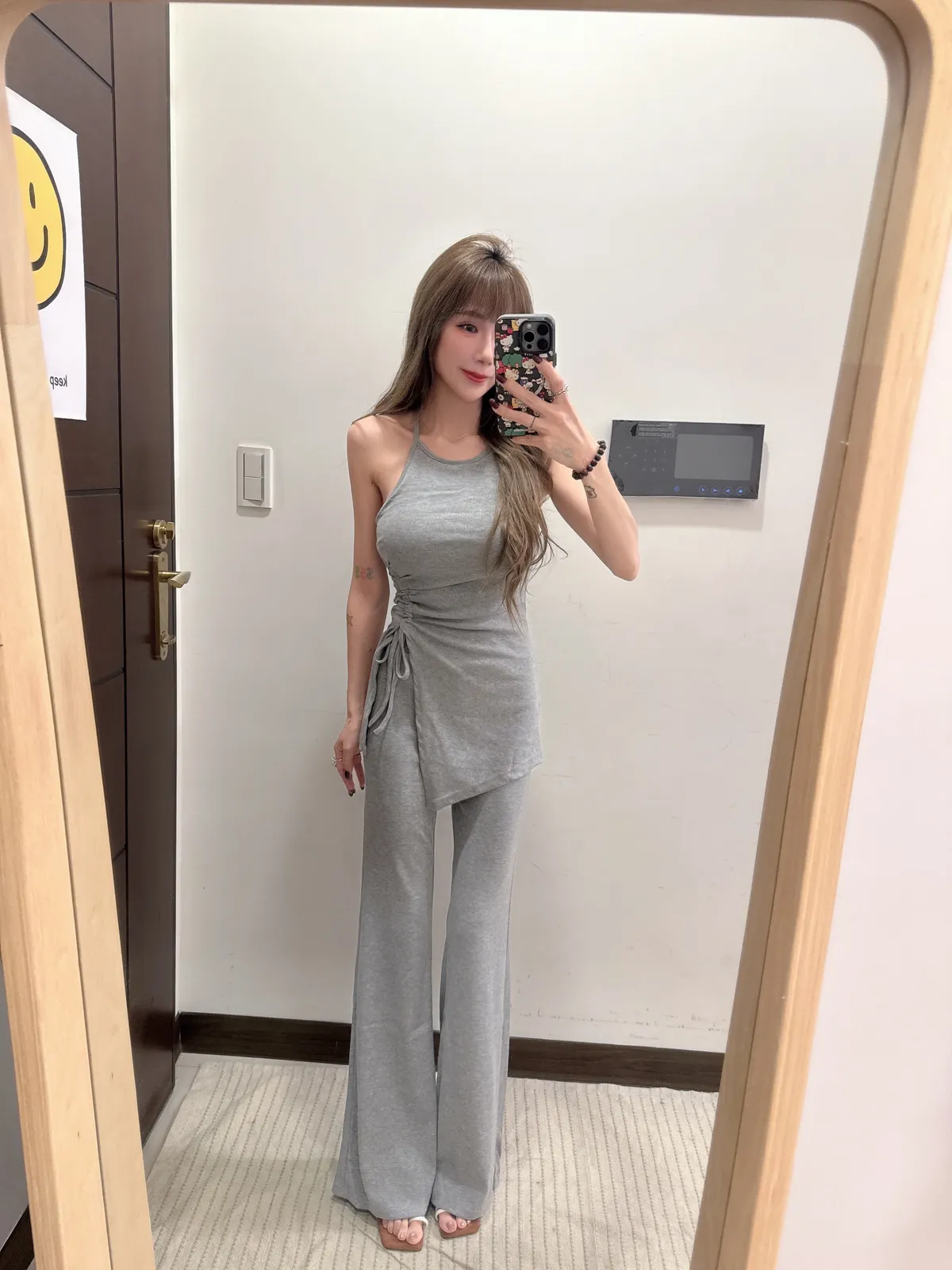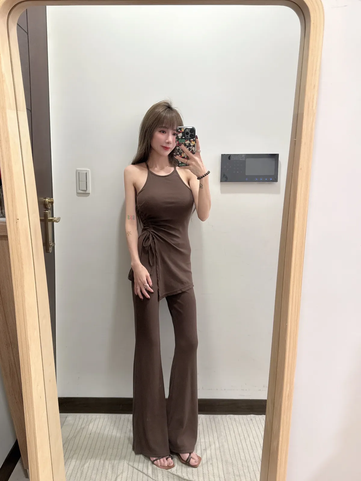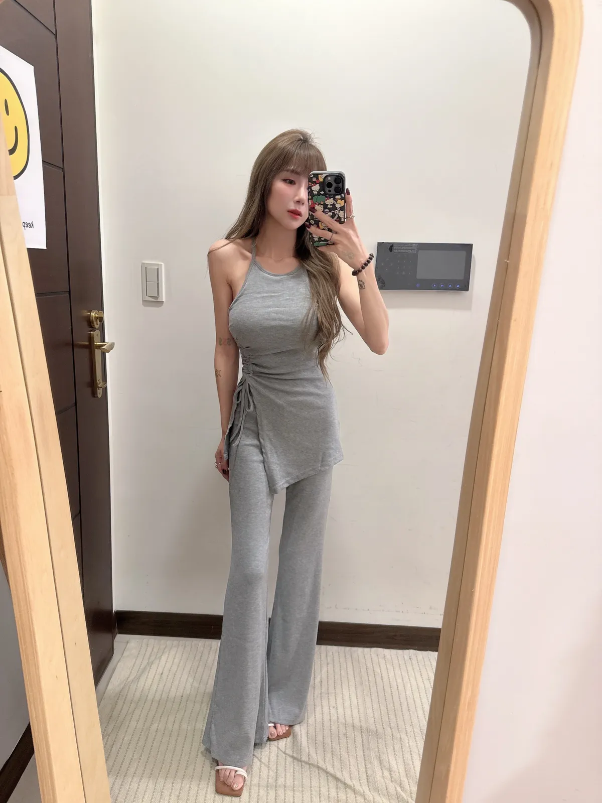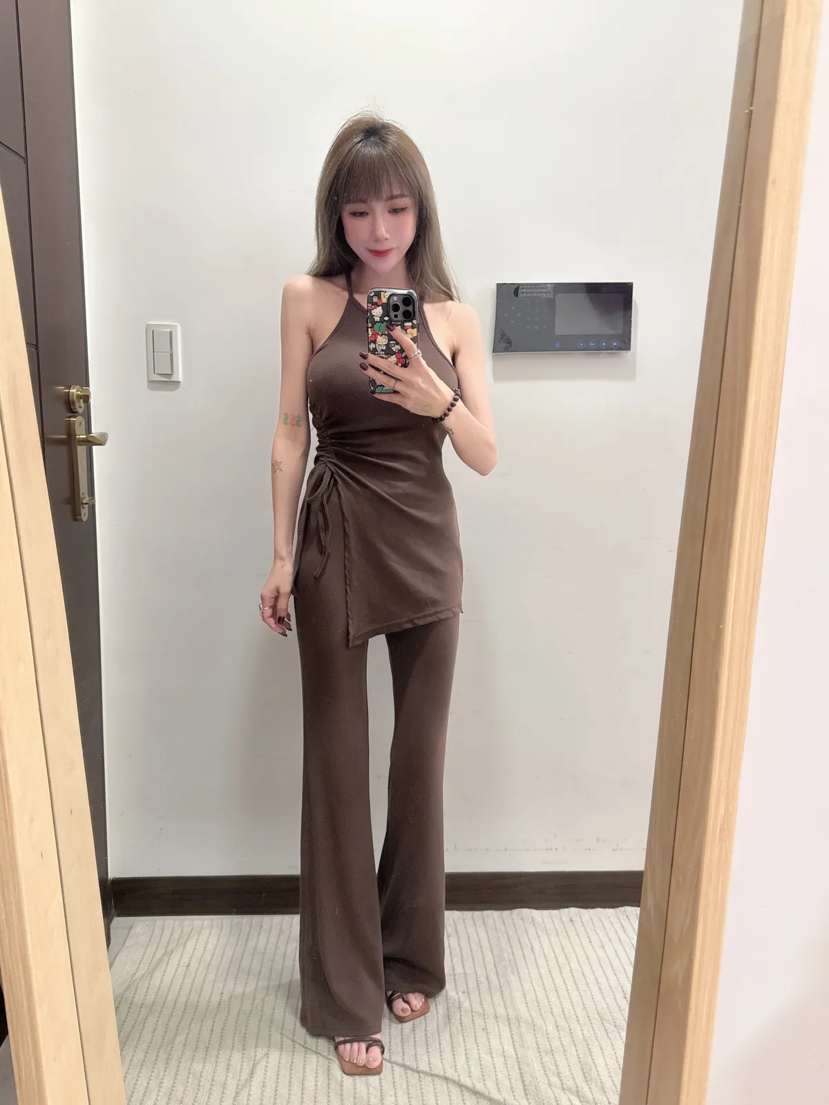 預購/訂製款削肩抓皺抽繩BRATOP喇叭褲套裝