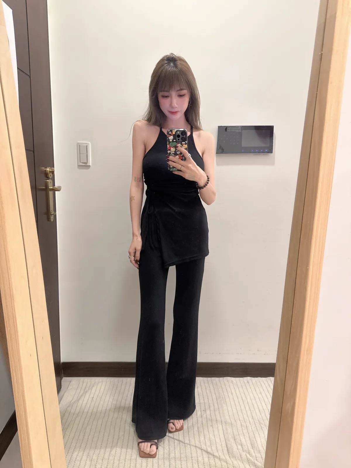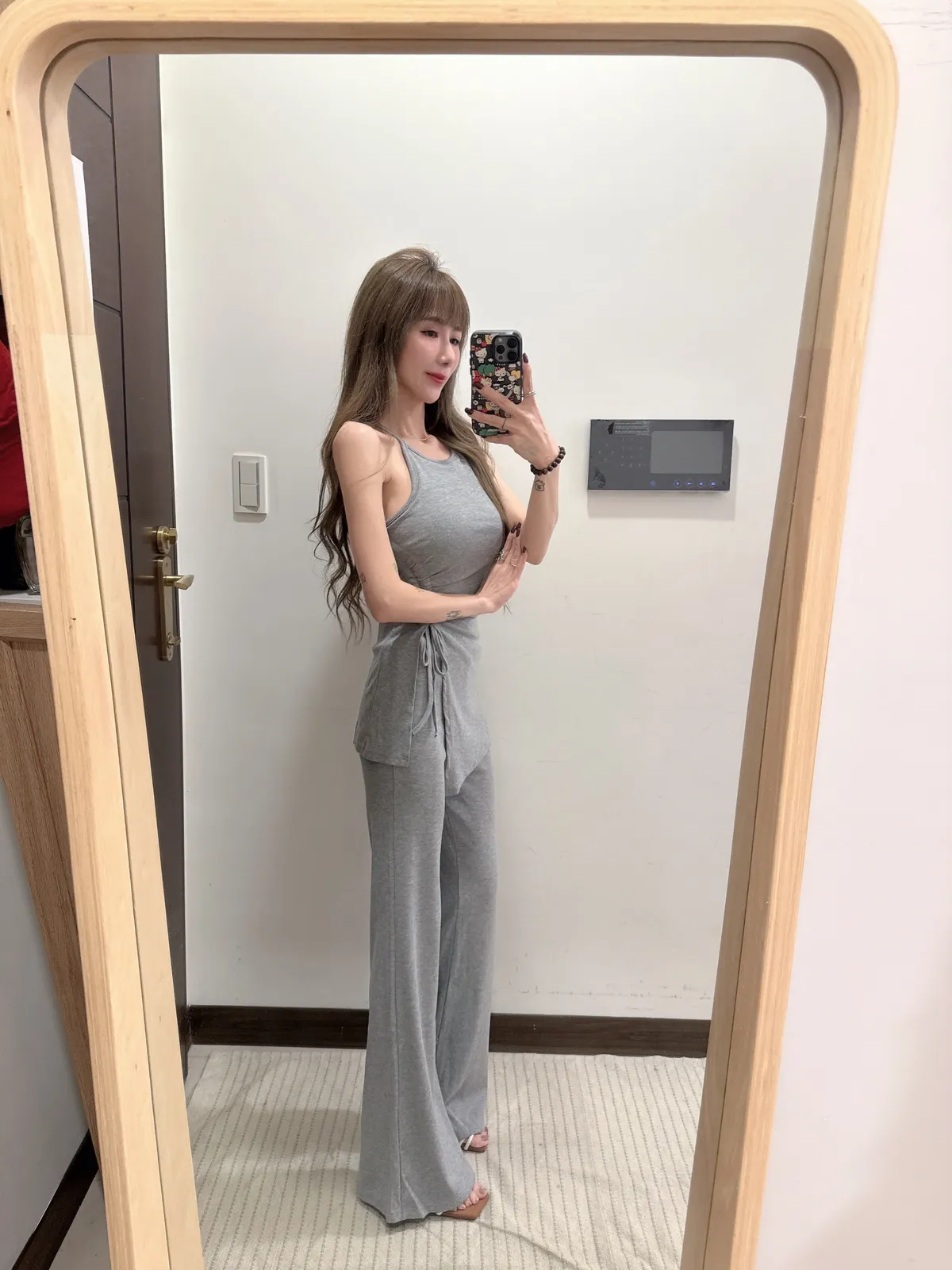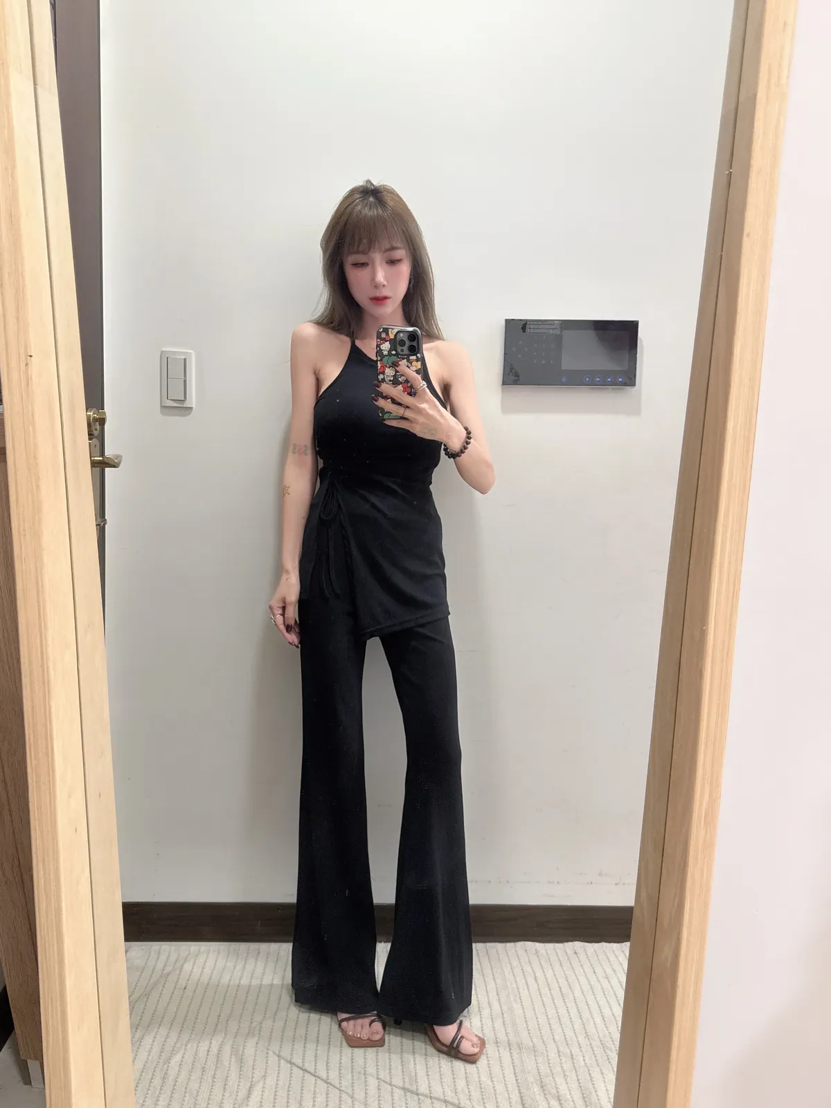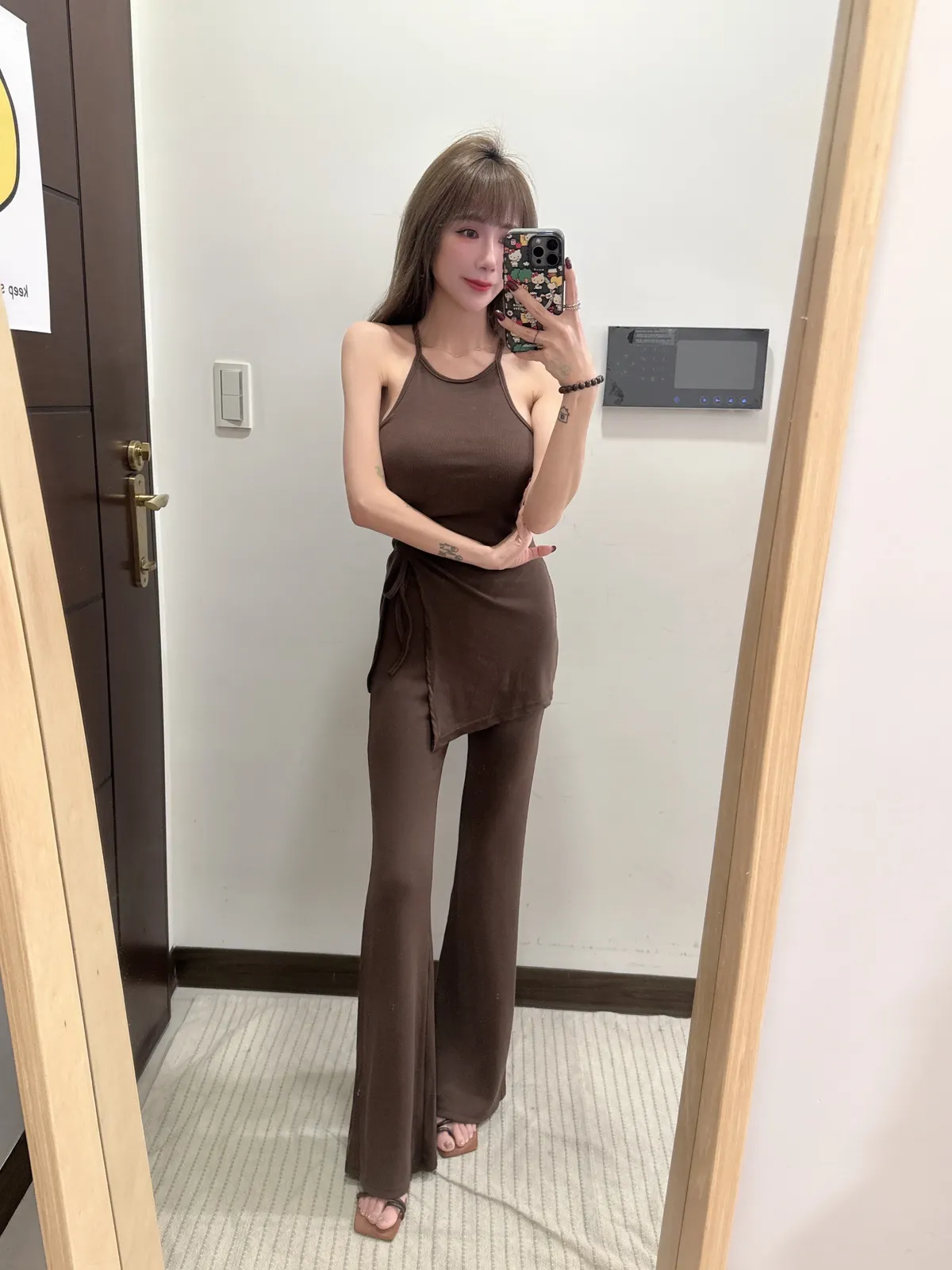 預購/訂製款削肩抓皺抽繩BRATOP喇叭褲套裝