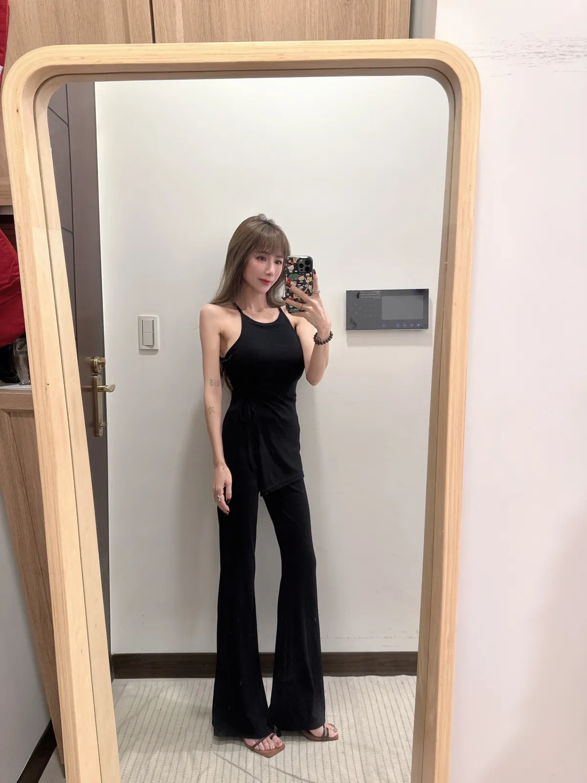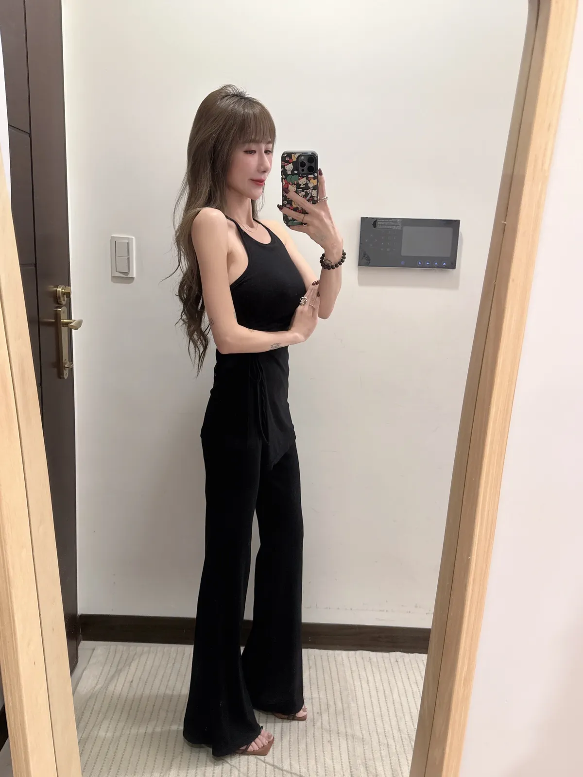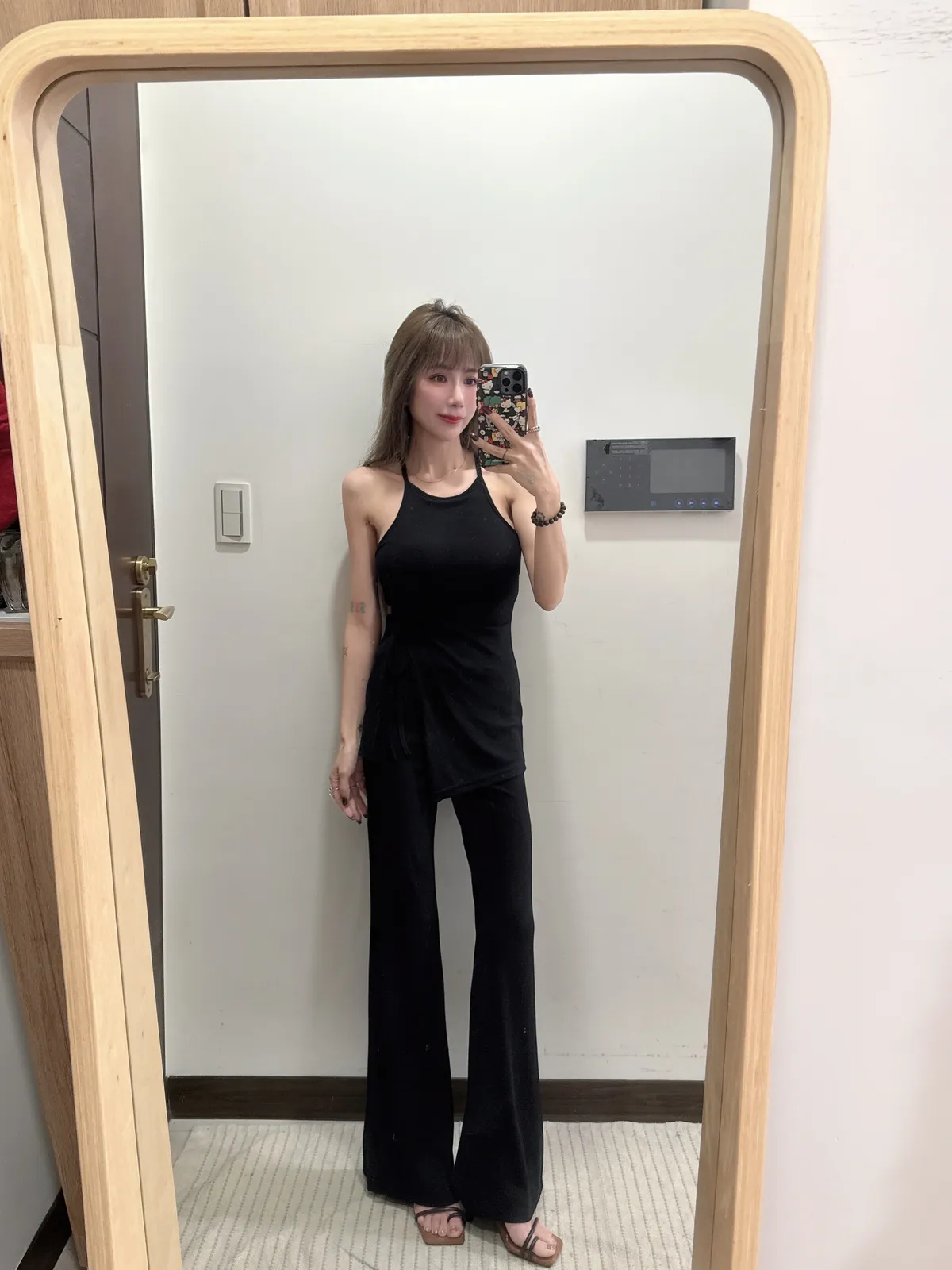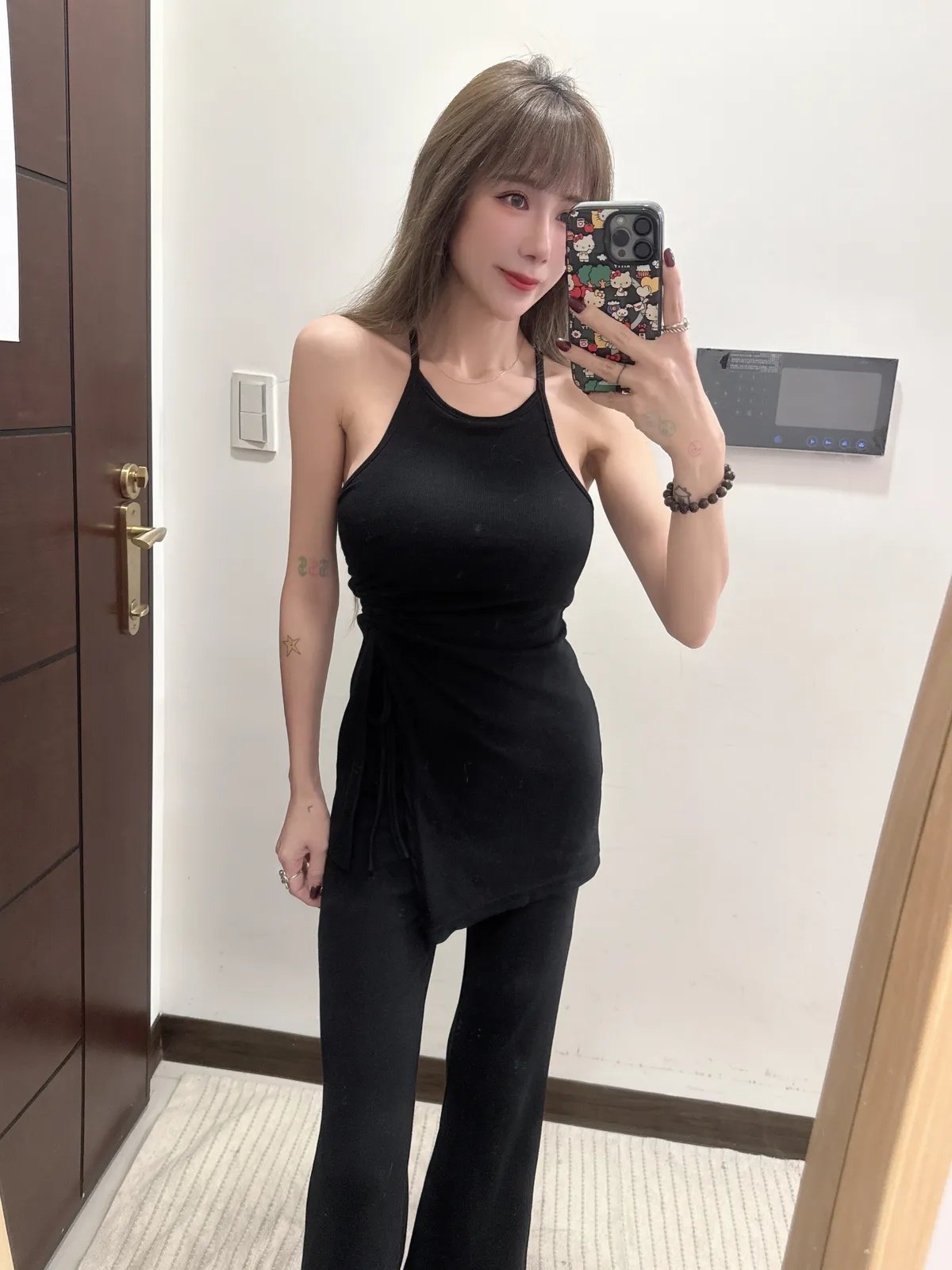 預購/訂製款削肩抓皺抽繩BRATOP喇叭褲套裝