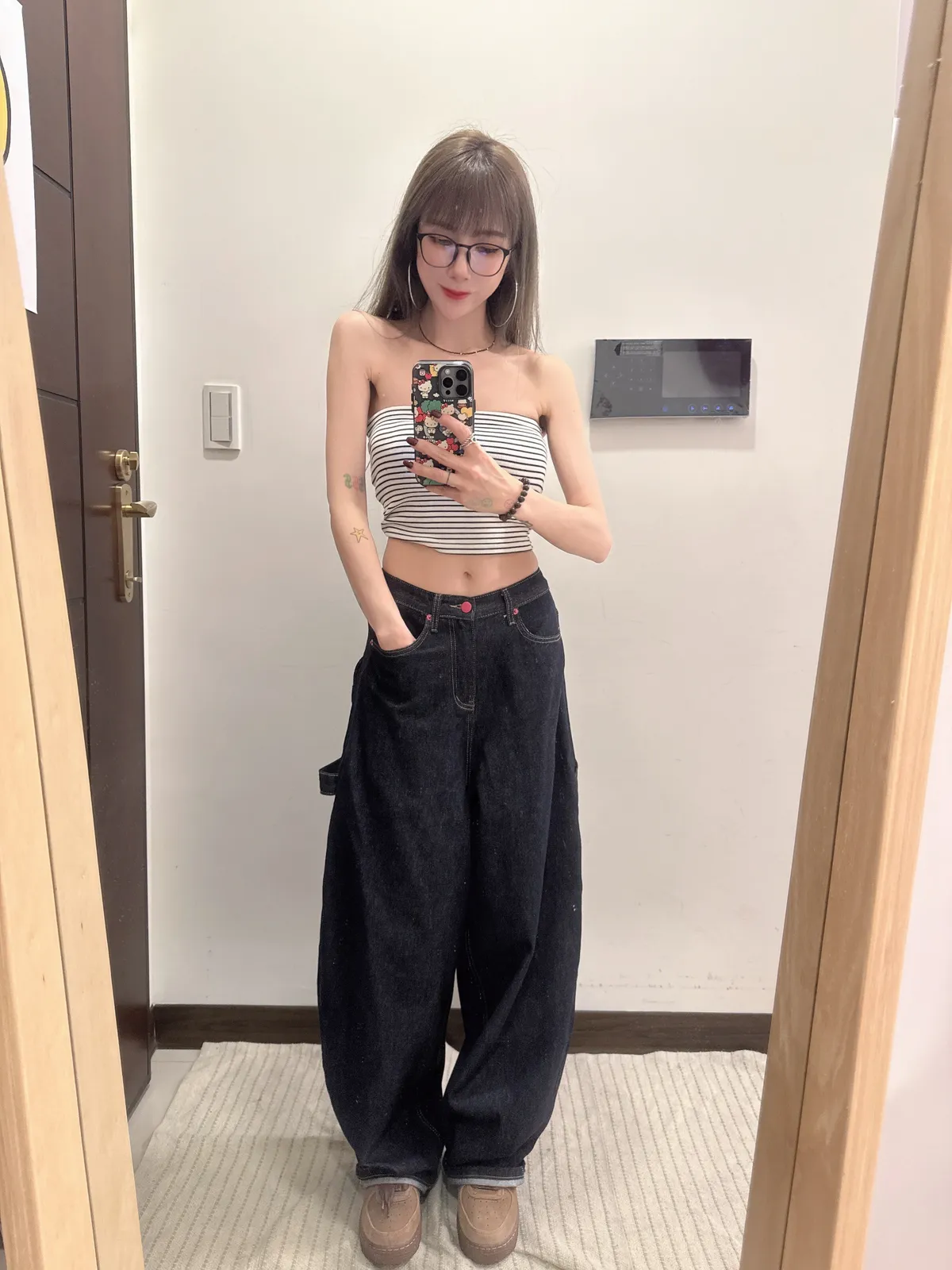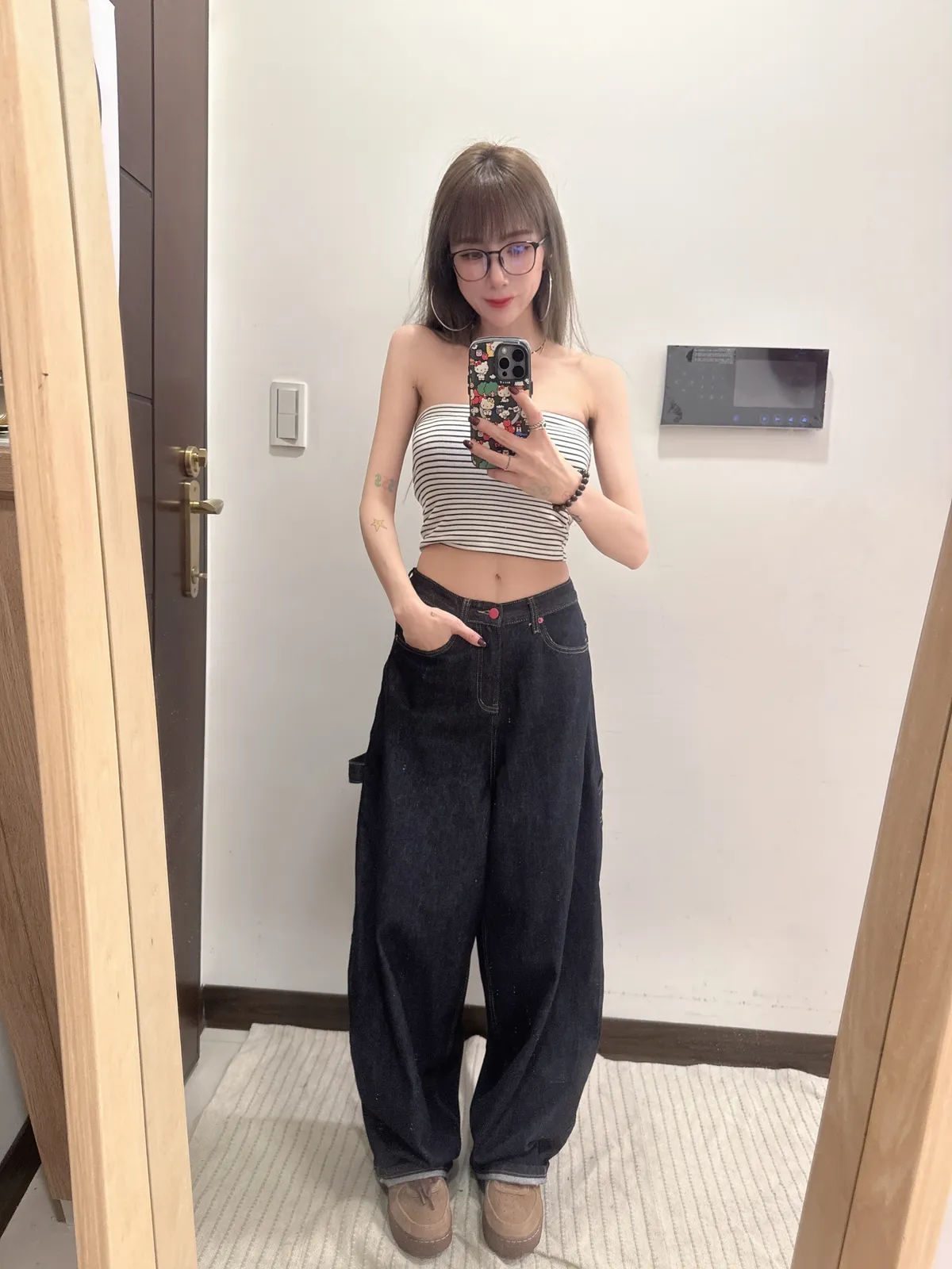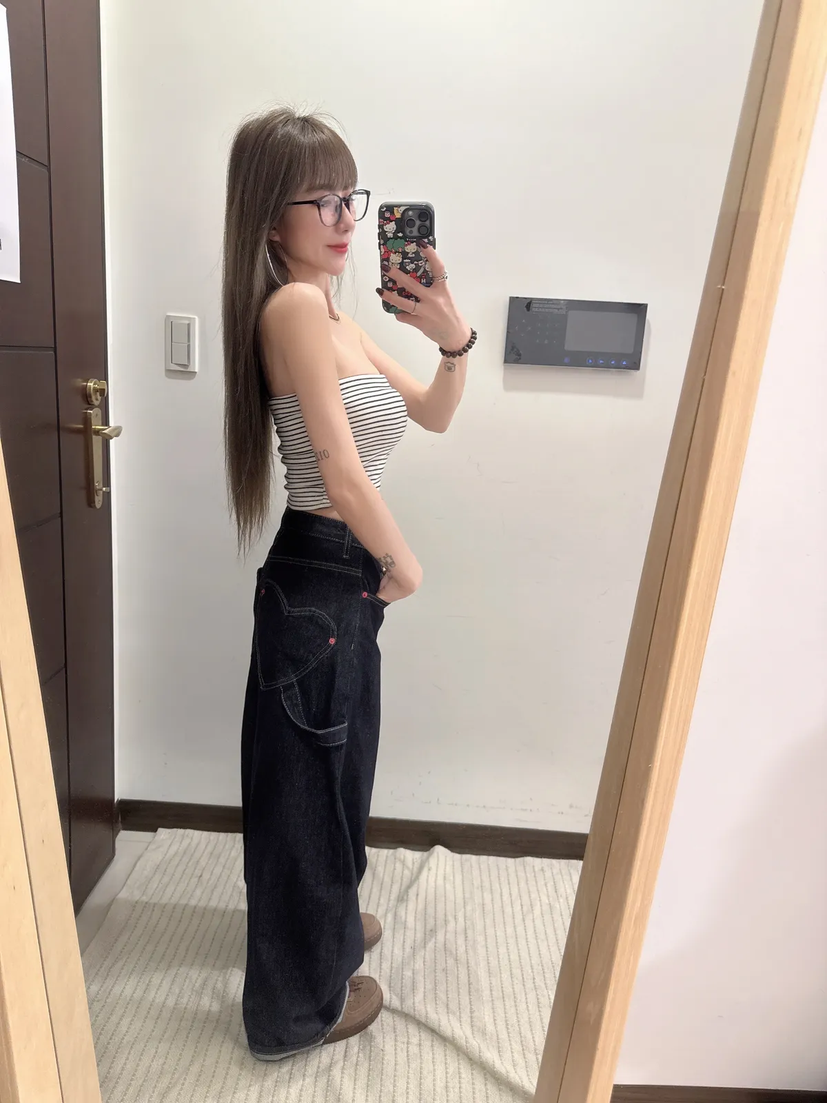 預購/原色後愛心口袋牛仔寬褲