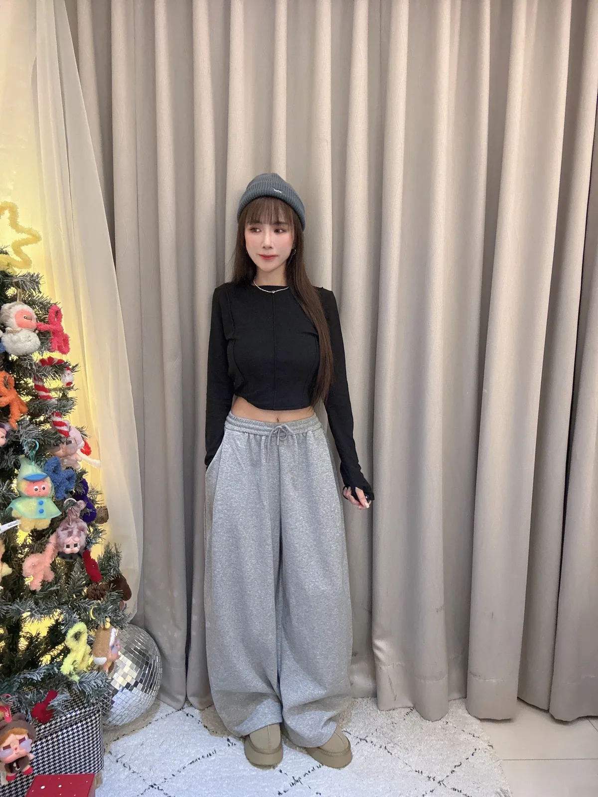 貼心提醒🥨IG有影片介紹詳細說明 🍔小慈身高157公分 44公斤 🥐商品說明🥐下擺有抽繩束口圖片這個深色是舊款實際上這次新的顏色是黑色深灰跟灰色所以你看到圖片會有一點藍黑的感覺是正常的現在下單都是黑色純黑色